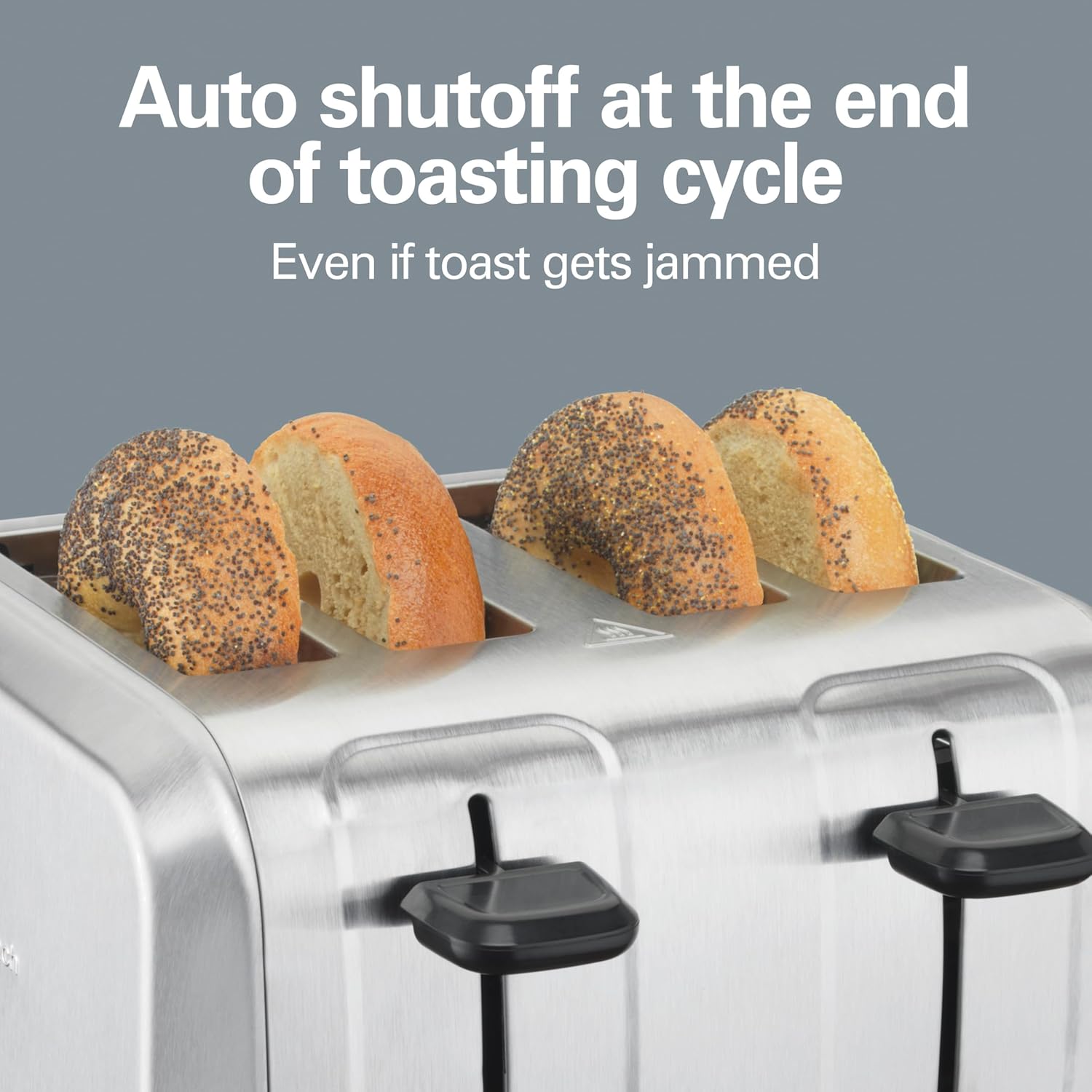 AUTO SHUTOFF FOR PEACE OF MIND: The toaster automatically shuts off at the end of the toasting cycle, even if toast gets jammed