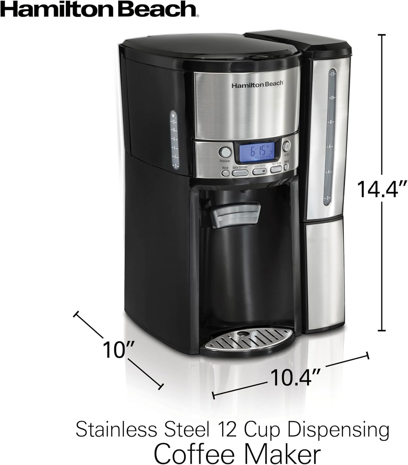 HOT COFFEE WHEN YOU’RE READY ONE FRESH CUP AT A TIME: The 12 cup coffee maker dispenses hot coffee directly into a cup or a 7″ travel mug whenever you’re ready for a cup by simply pressing the dispensing bar.