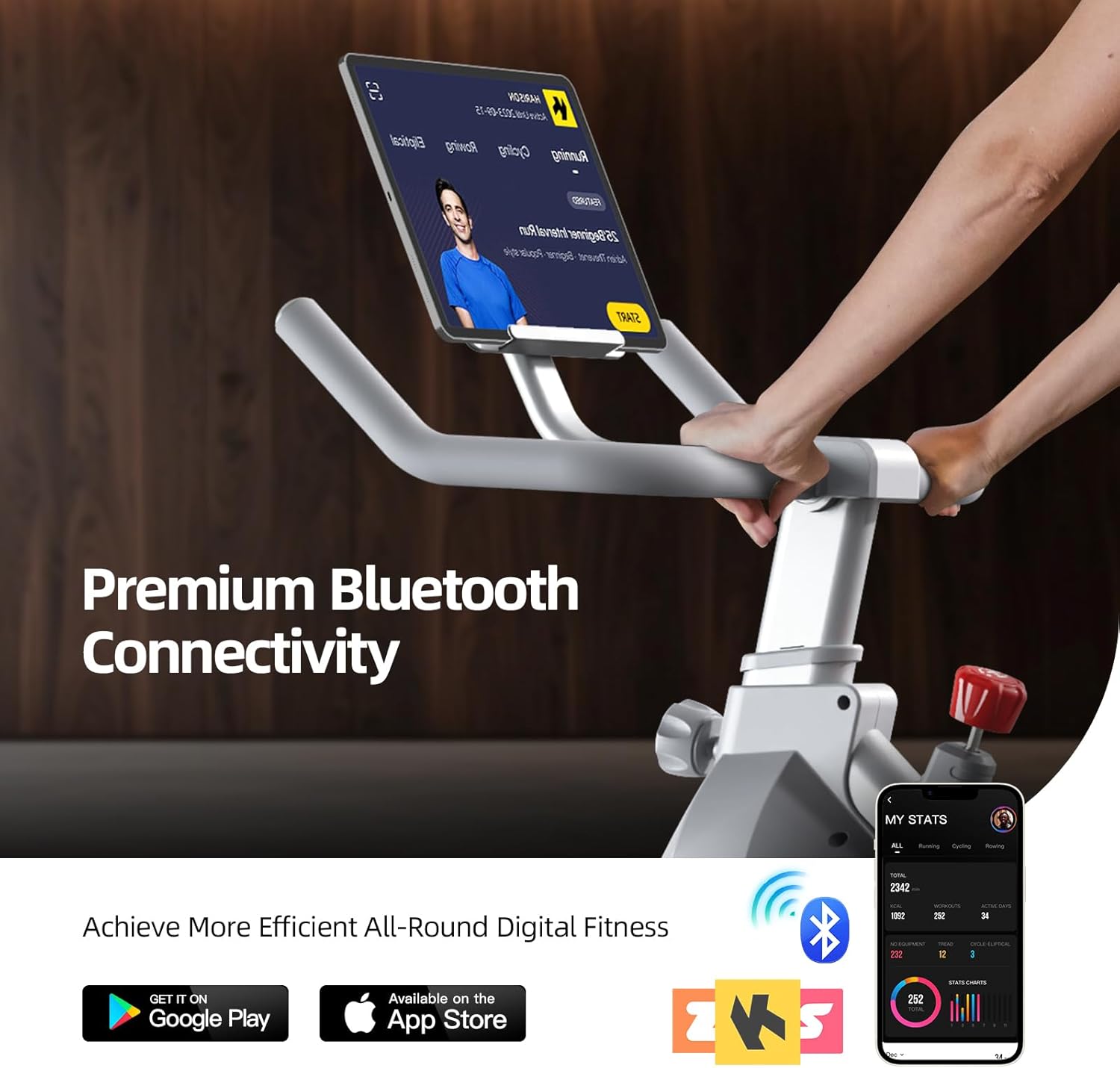 Exercise Bike with Bluetooth: The HARISON Stationary Bike is Bluetooth-compatible with a variety of fitness apps, allowing you to track real-time exercise data such as time, speed, RPM, distance, and calories burned. You can also select from a range of exercise programs within the apps to customize your workout plan, making your fitness routine both effective and enjoyable