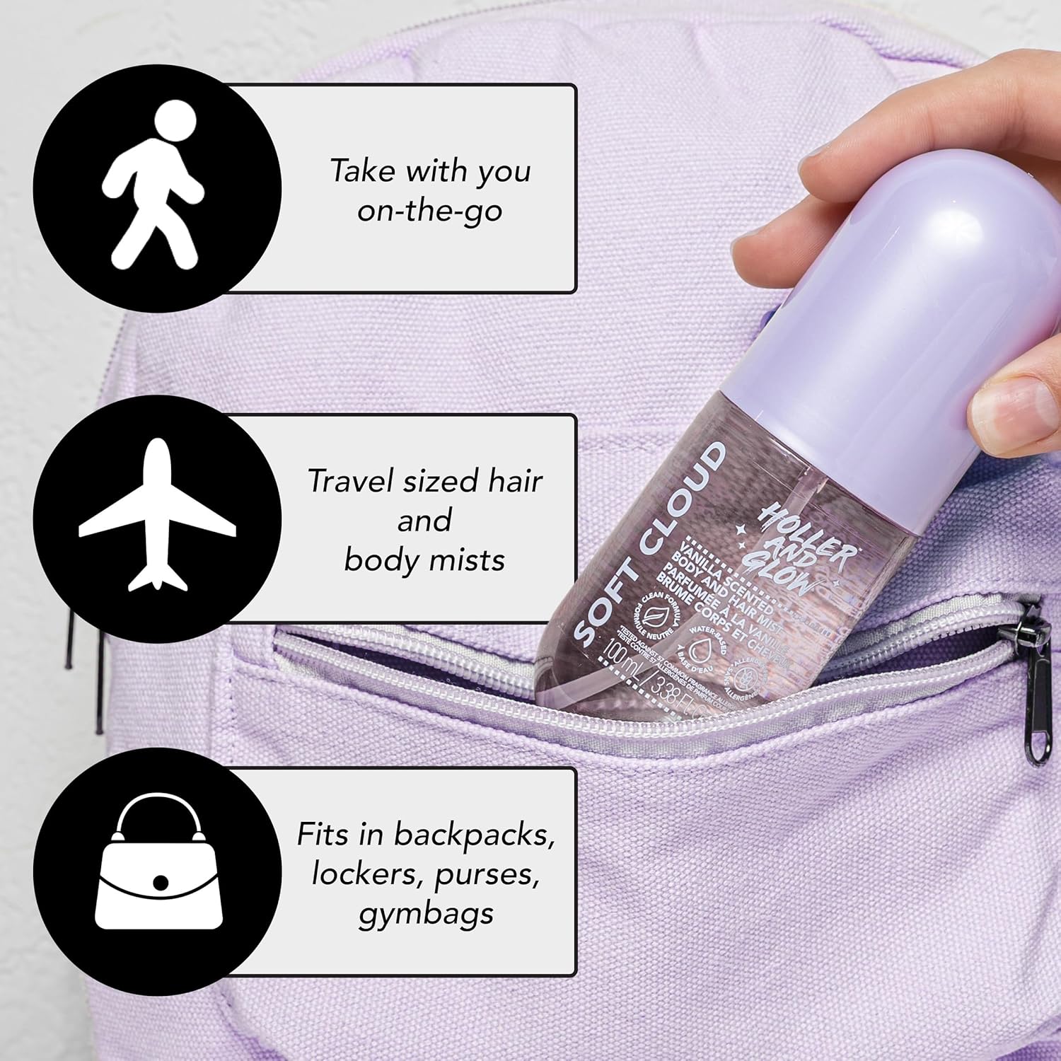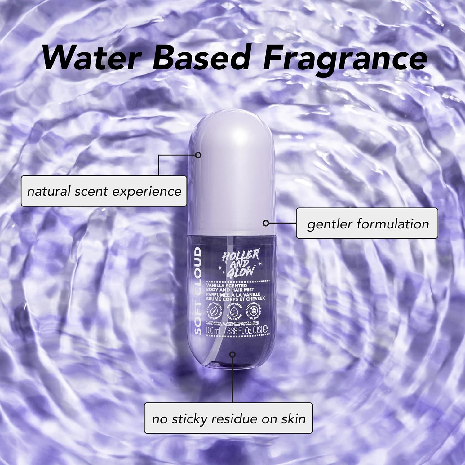Holler And Glow Mood Boosting Soft Cloud Body & Hair Mist, Body Spray, Teen Girls Spritz, Long Lasting, Vanilla, Sweet Scented, Water Based Fragrance For Tweens, Clean & Gentle Formula, 3.38 Fl Oz