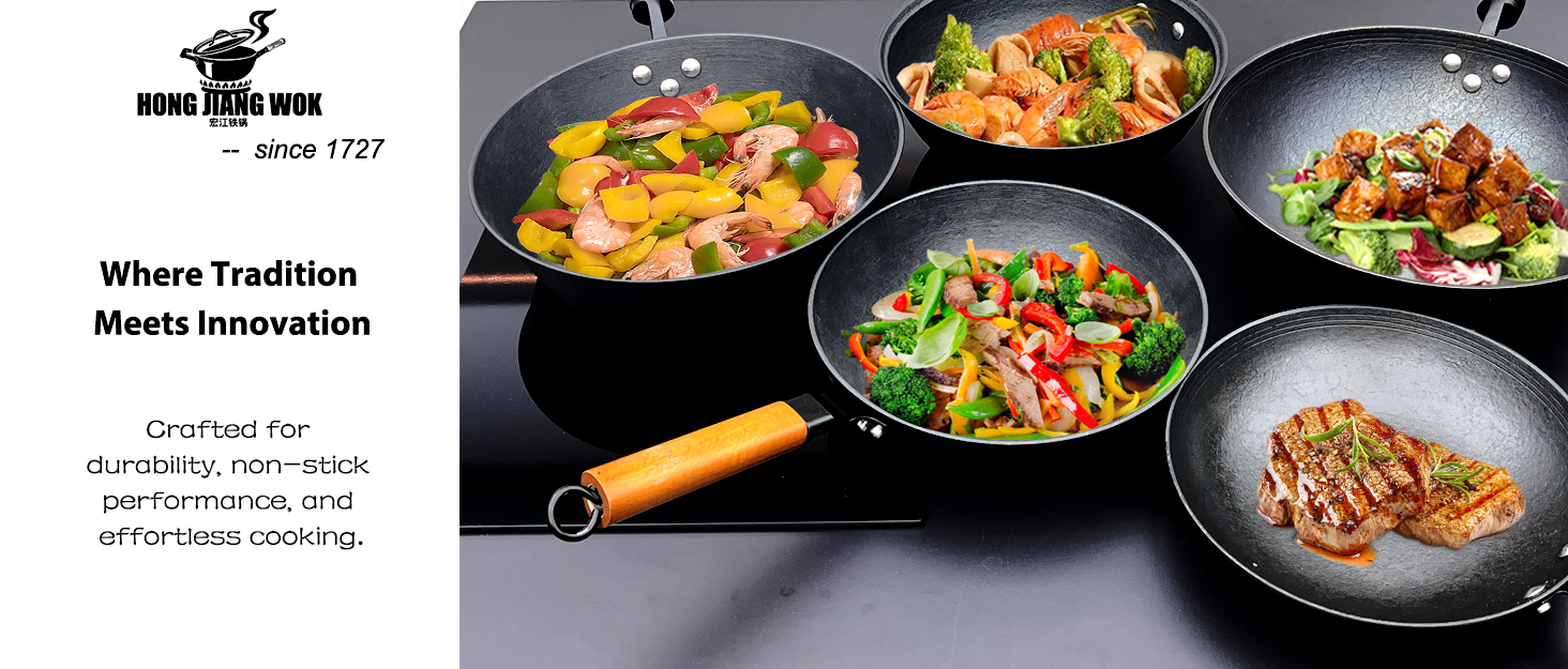 【Multi-stove Suitable】Woks & stir-fry pans are designed with a flat bottom and is suitable for most stovetops, including induction, gas, electric, etc., to meet the needs of more scenarios. HONG JIANG WOK’s sturdy construction and excellent heat retention make it ideal for a variety of cooking techniques, from frying to stewing.