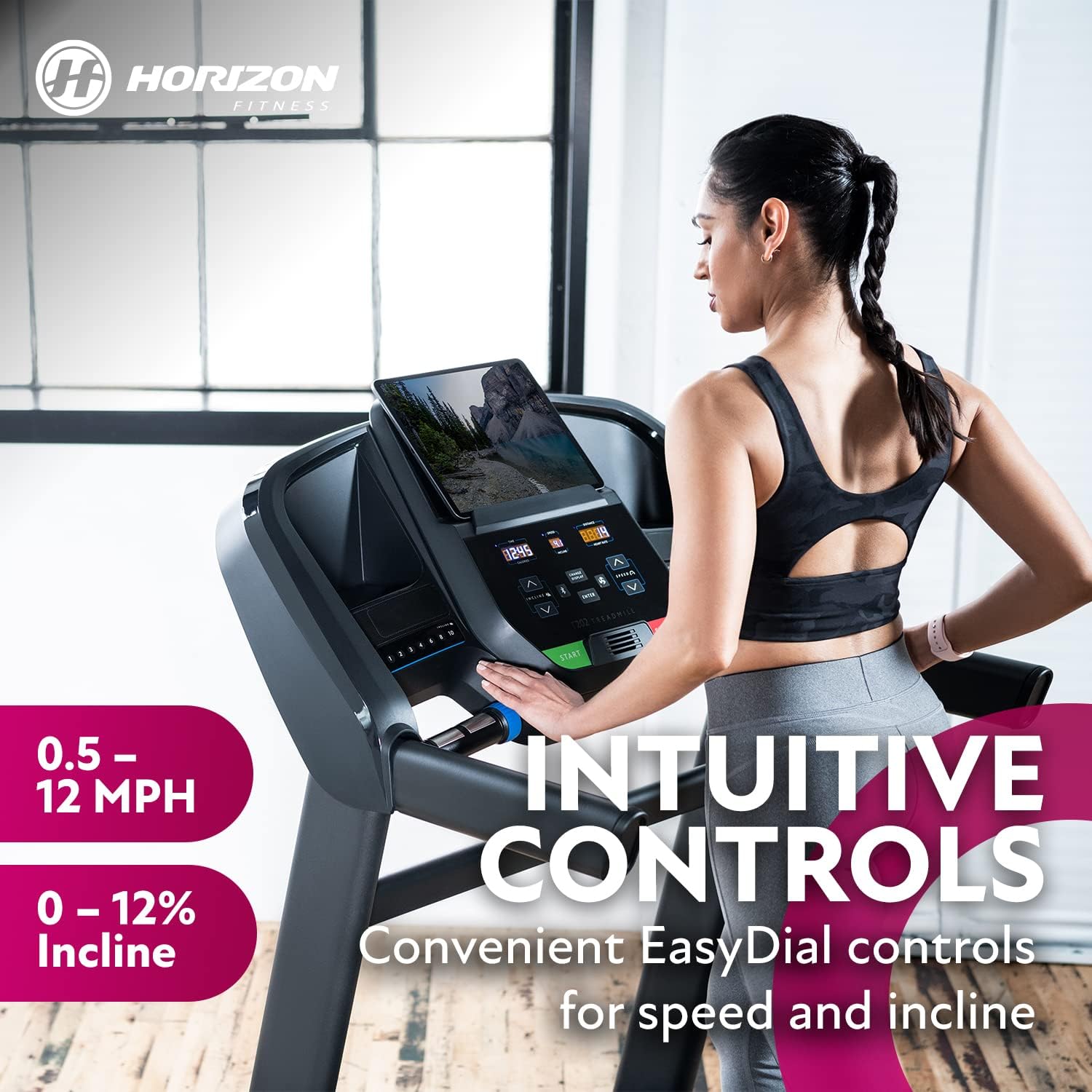 CONVENIENT CONTROLS: EasyDial controls put your pace at your fingertips. Roll the right dial forward to increase speed and left dial to run up the hill. Need to ease up? Just roll it back.