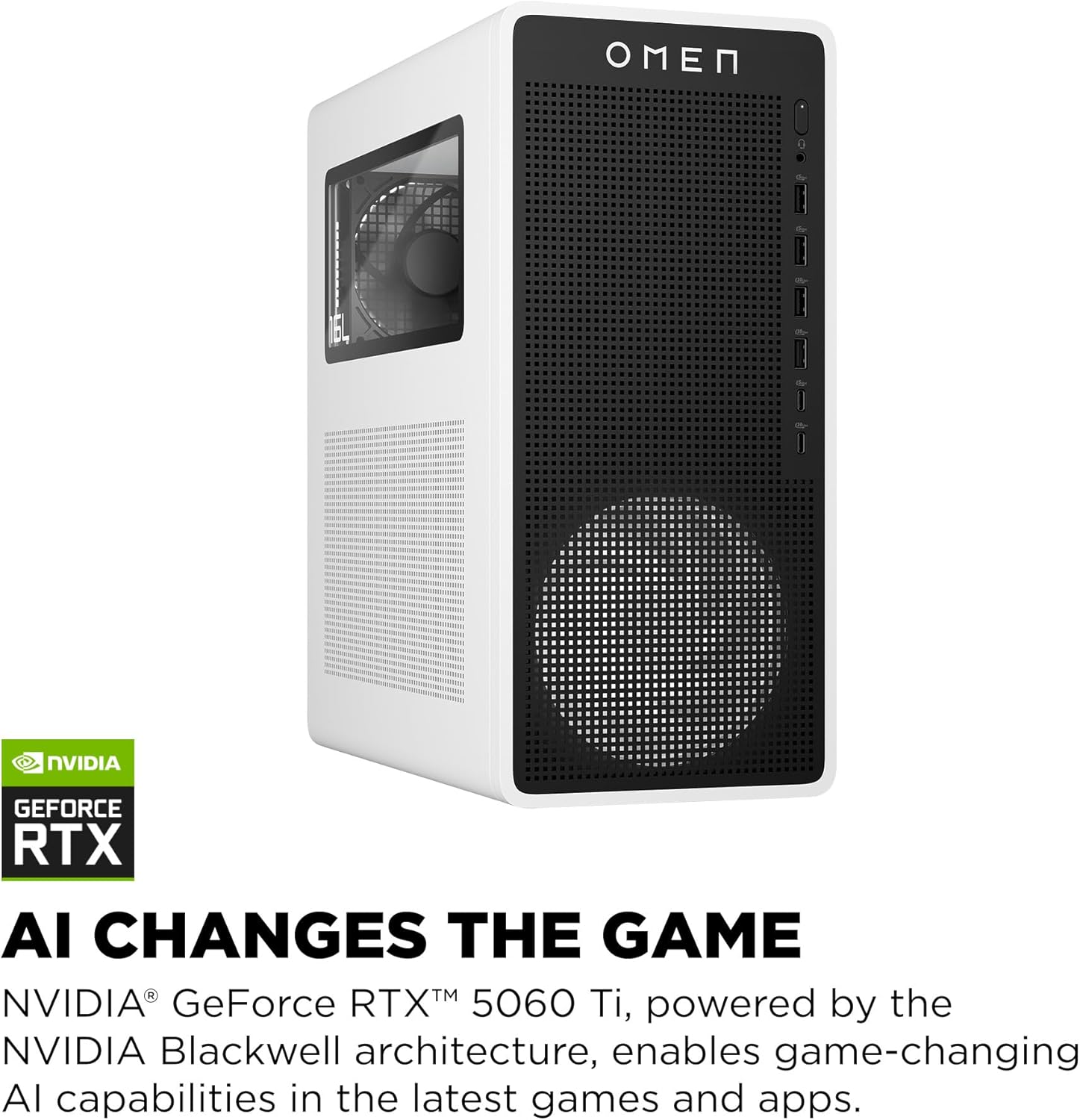 HP OMEN 16L Gaming Desktop PC, Intel Core Ultra 5 225F, 32 GB RAM, 1 TB SSD, NVIDIA GeForce RTX 5060 Ti, Windows 11 Home, Microsoft Copilot, Panda Metal, TG03-0130 (2025)