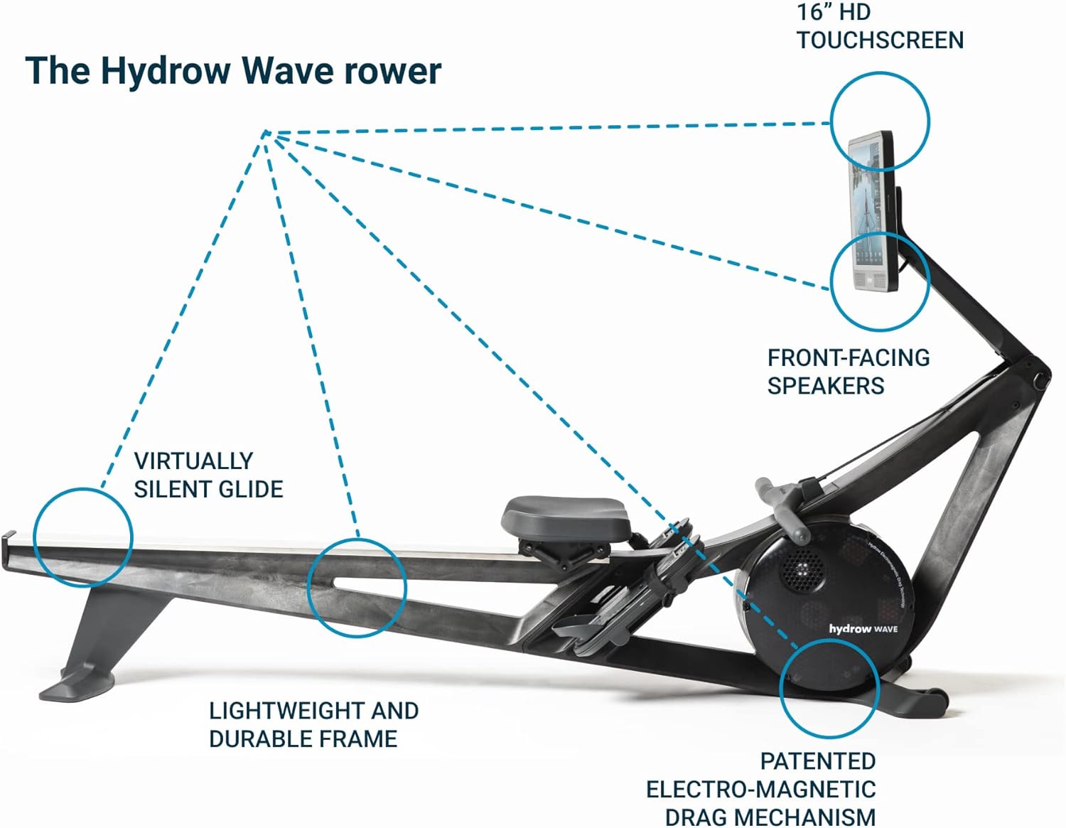 Escape into every workout. The Wave’s patented electromagnetic drag technology is designed to mimic the feeling of rowing on water. And with a crystal-clear 16” HD touchscreen display with front-facing speakers, the experience is about as immersive as it gets. Features include padded seat, adjustable foot straps, and a low-stress grip handle.