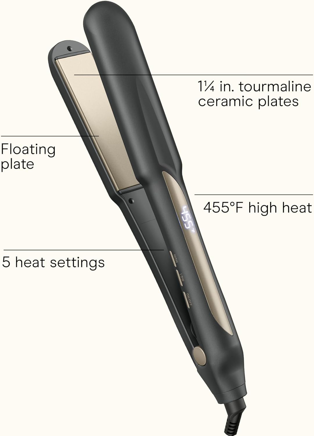 Infiniti PRO CONAIR Tourmaline Ceramic 1 ¼-Inch Flat Iron Digital Hair Straightener, 1 ¼-Inch Flat Iron to Straighten or Curl, 5 Heat Settings, for All Hair Types and Textures, Dark Gray
