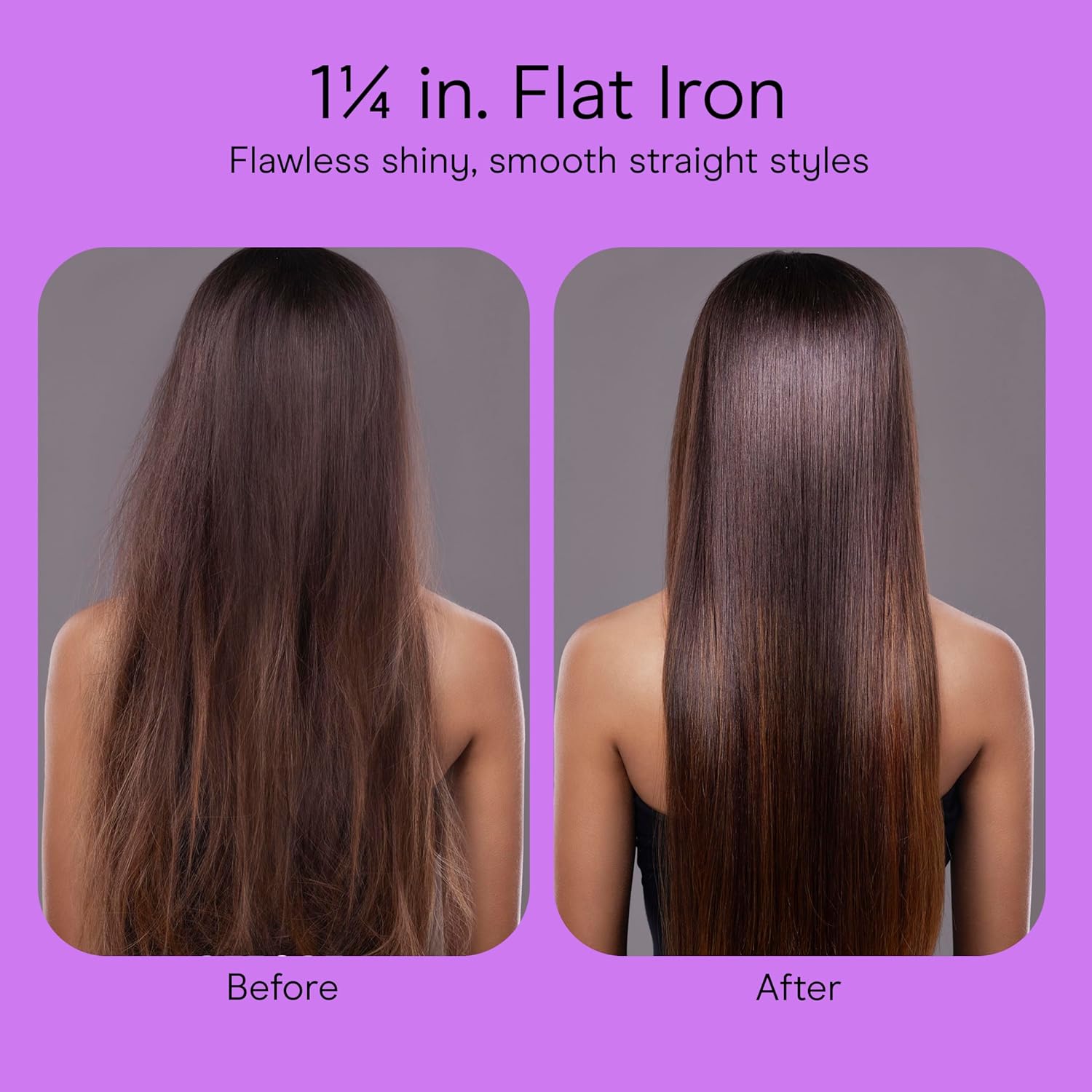 LESS FRIZZ, MORE SHINE: Fight the frizz with the INFINITI PRO CONAIR Flat Iron Hair Straightener. The 1¼-inch tourmaline ceramic barrel reduces frizz and boosts shine for healthier-looking hair, letting you straighten in a single pass or curl with ease.