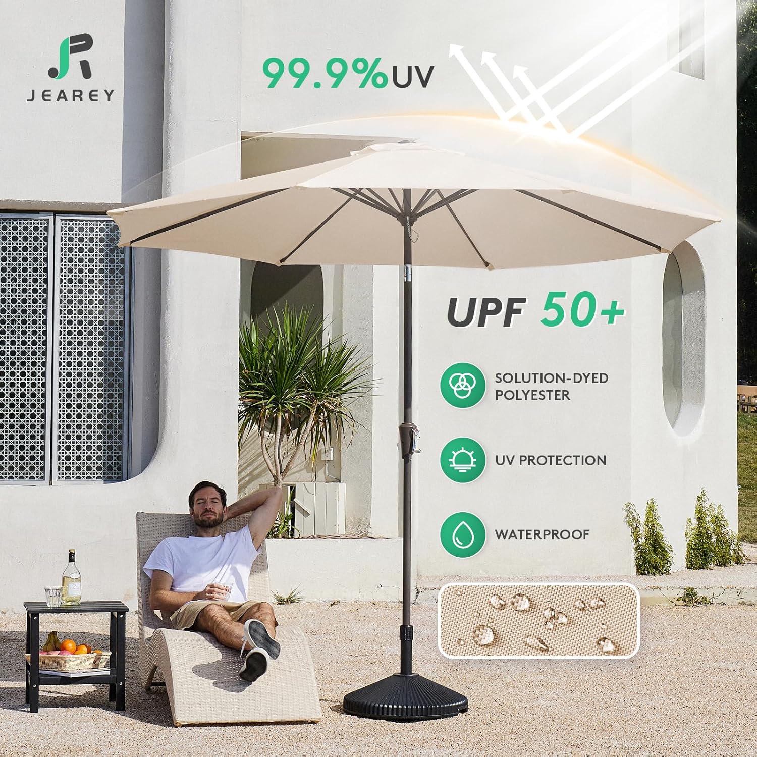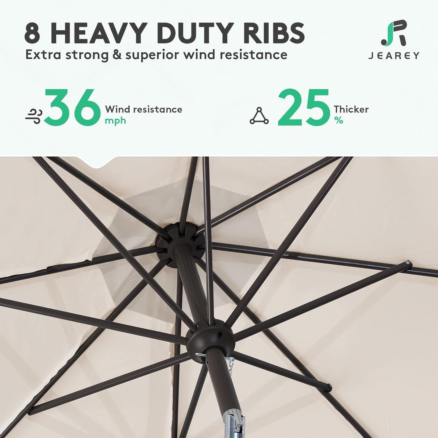 STURDY & DURABLE: JEAREY always puts safety first. To reduce swaying and increase overall strength of our umbrella, the entire structure of yard umbrella is made of sturdy iron material. Powder coated iron pole and 8 sturdy ribs provides stronger support and are built for stability