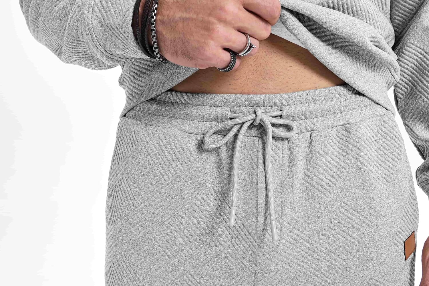 Style that works as hard as you do. This versatile 2-piece set combines a stylish jacquard pattern with practical side pockets, making it the perfect outfit for any activity.
