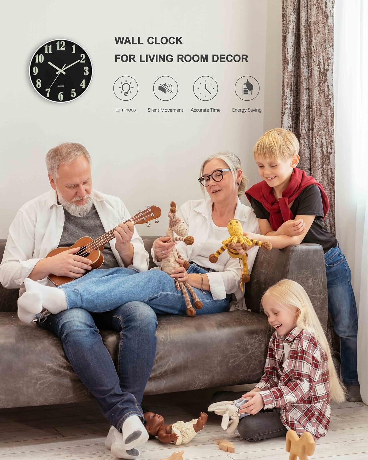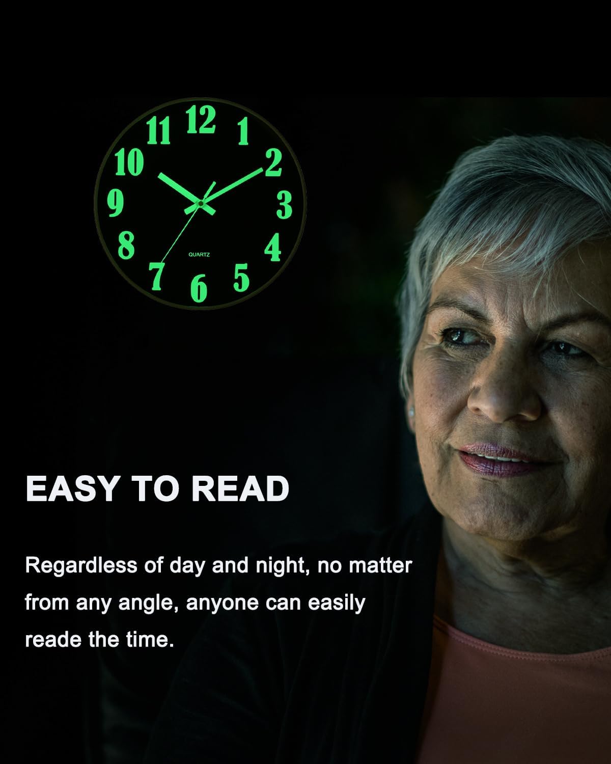 ❶ 【Glow in The Dark】The numbers and hands which have night light function. It asks for absorbing enough light energy during the day. At night, it is released in a fluorescent manner, so you can see the light at night or in the dark.(The wall clock will glow in the dark for 3-6 hours or so, The glow time depends on the light absorbed in the day, The brightness of noctilucent gradually decreases, and it can’t stay at its brightest all the time.)