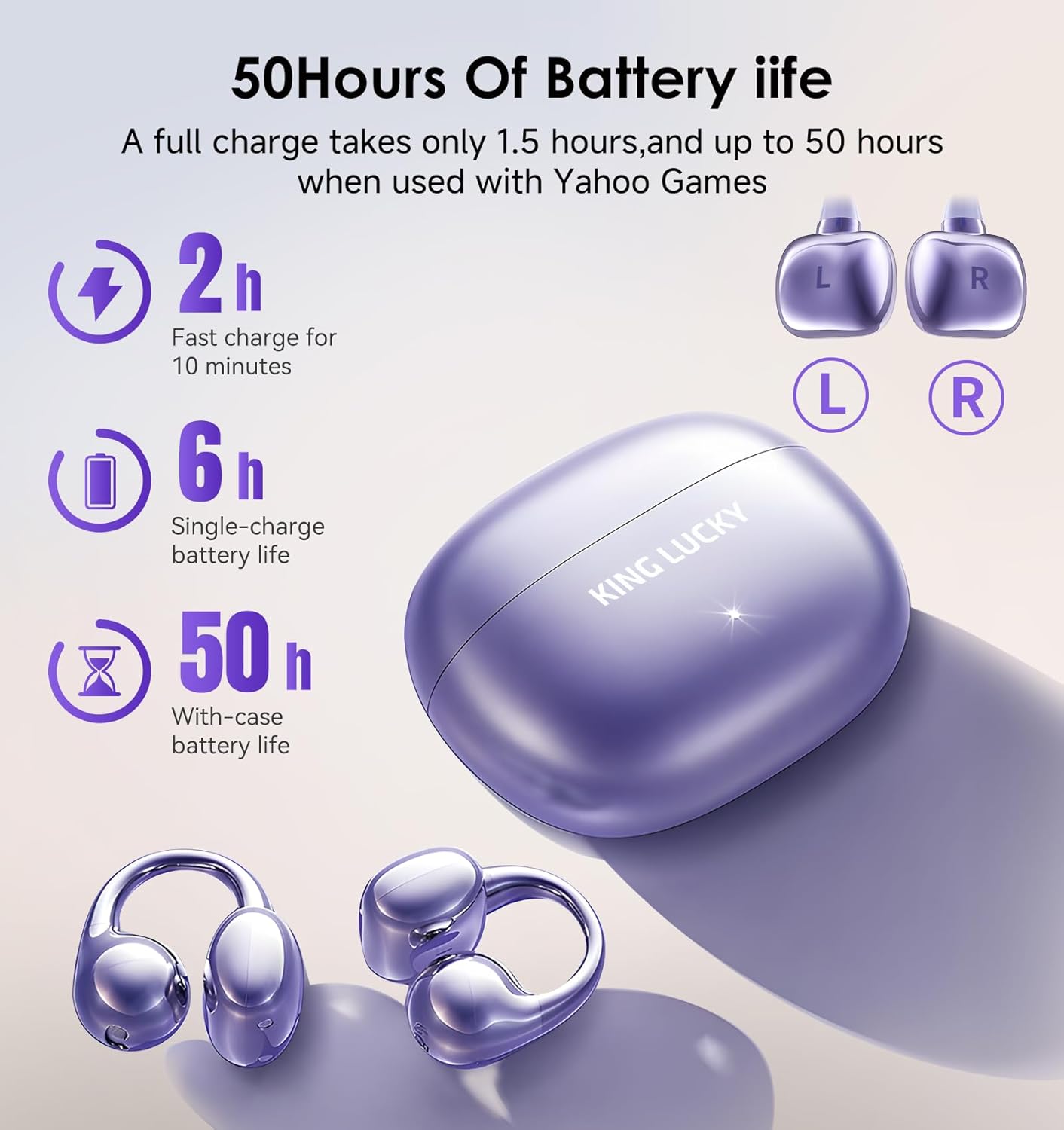 🔥① Global No.1 Clip-On Earbuds Gen 3 Fully Upgraded-4 Major Upgrades – Lighter, Stronger, Smarter: 2023–2026 Global No.1 Open Ear Earbuds certified by Frost & Sullivan. King Lucky GEN 3 Ear Buds 4 Upgrades Redefine Ear Clip Earbuds Comfort Sound Quality ✅ Up1:Longer & thinner ear hooks solve ear pressure, discomfort & slipping, perfect for sports & long-time wear. ✅ Up2:Bluetooth 6.0 Stronger signal & anti-interference solve high latency & frequent disconnections. ✅ Up3:High-accuracy touch control solves mis-touch & control errors, safer for driving & workouts. ✅ Up4:Upgraded 13mm Drivers solve weak volume & muffled audio issues for outdoor use