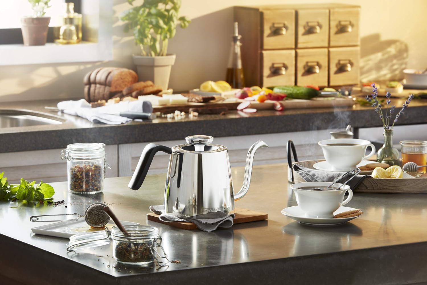Confidently pour with precision. The gooseneck spout and three unique flow rate settings deliver precise and consistent pour control for a pour over, tea or beverage of your choice.