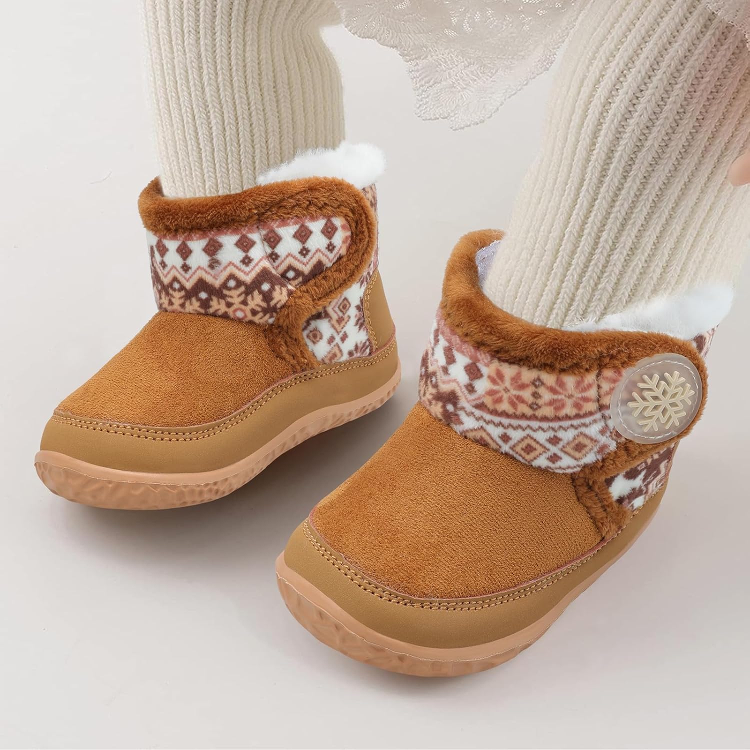 L-RUN Baby Boots for Infant Toddler Boys Girls Ankle Warm Suede Plush Lining House Slippers Little Kids Winter Shoes for Indoor Outdoor Walking