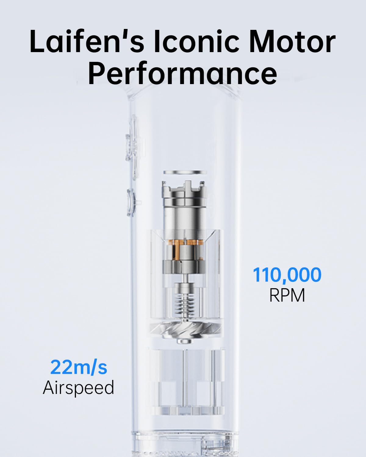 【High-Speed Brushless Motor & Fast Drying】Laifen hair dryer is equipped with a 110,000 RPM high-speed brushless motor, wind speed reaches 22m/s. Strong airflow can dry hair faster, speed up your routine.