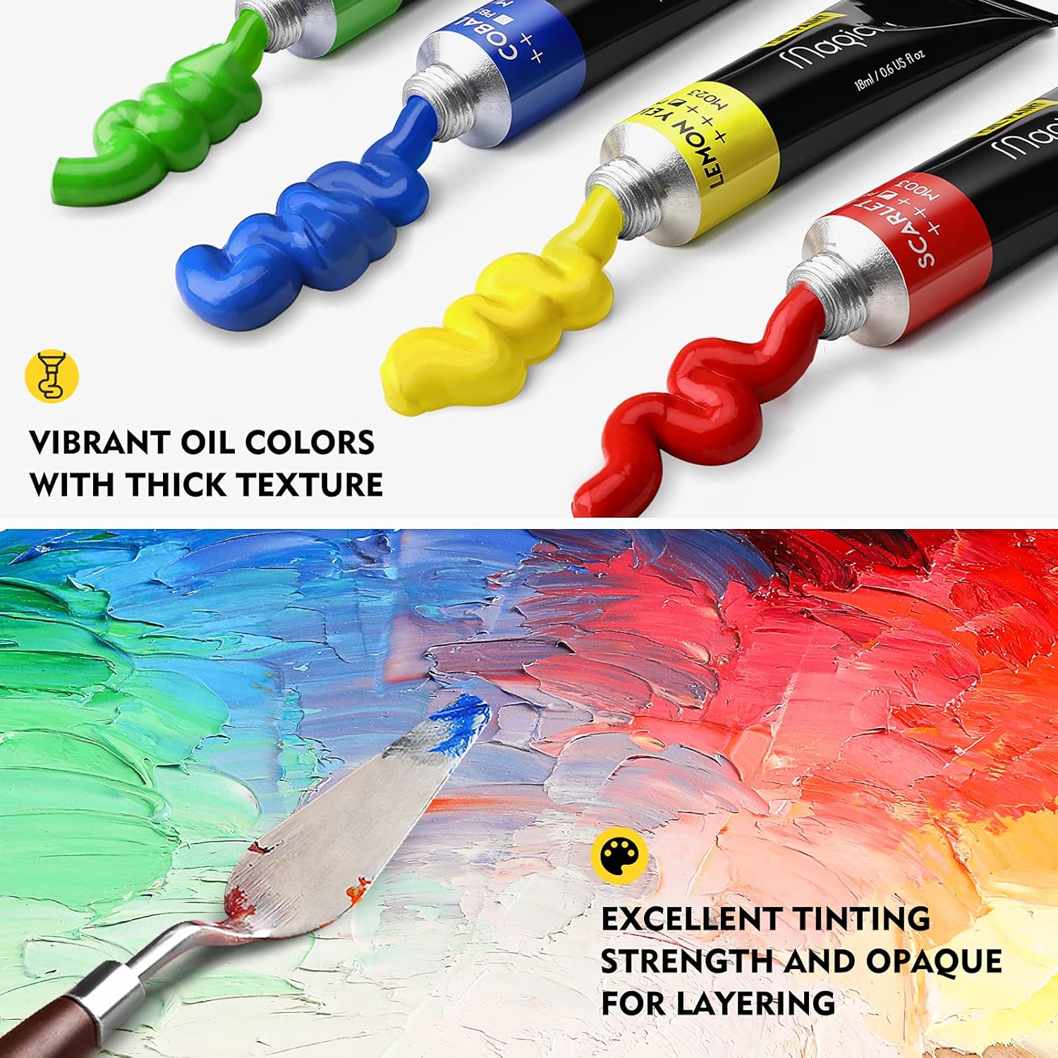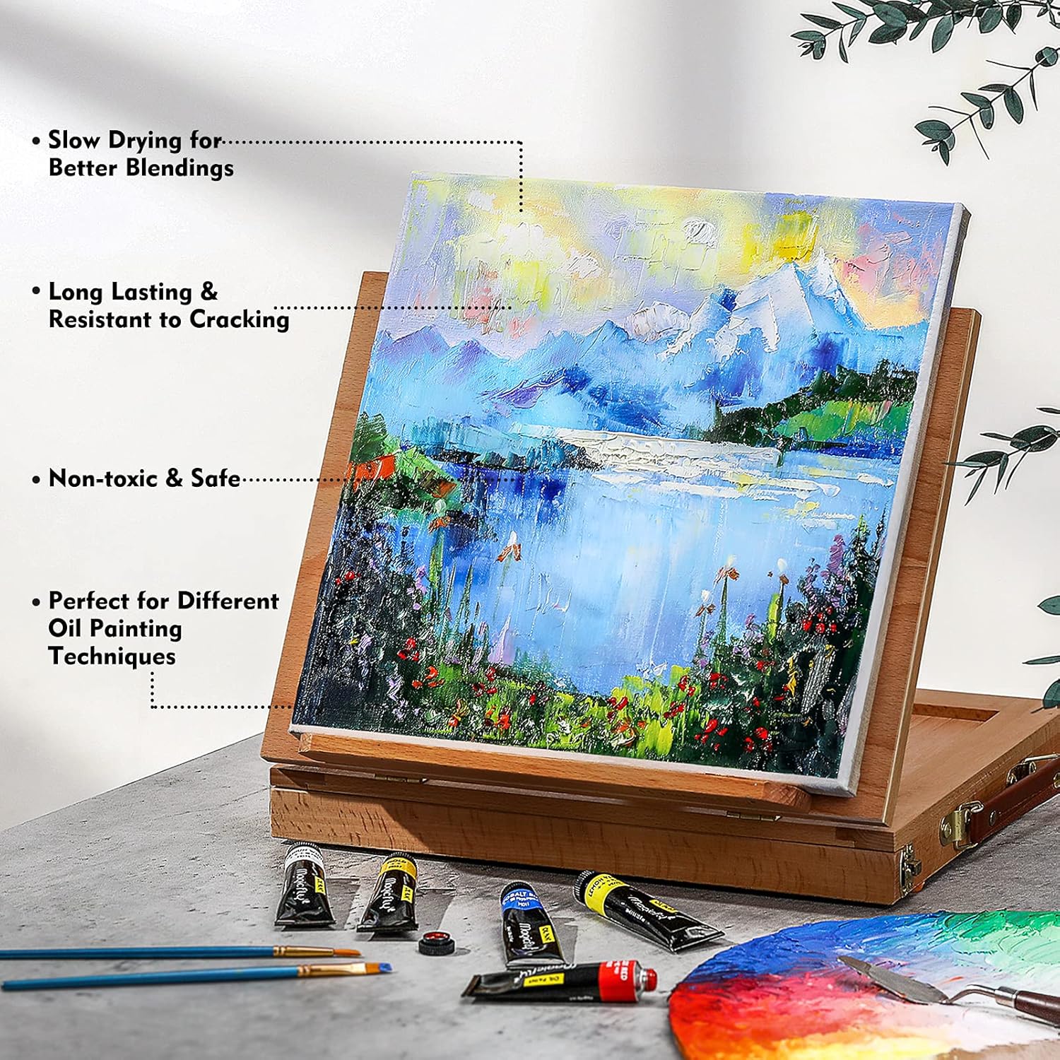 【Smooth & Creamy Texture】Our oil paints have thick consistency and excellent coverage. They glide smoothly on canvas, making it easy to mix.