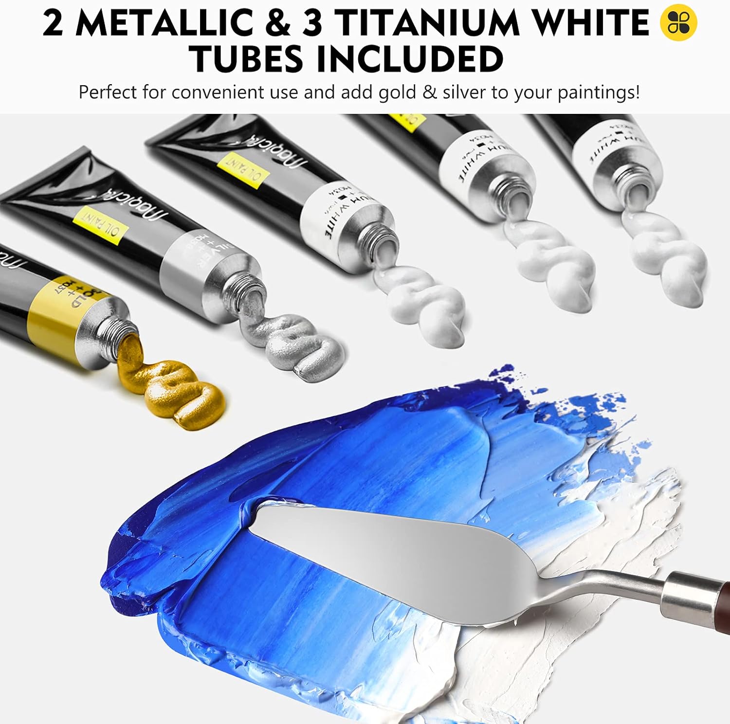 【40 Rich & Vibrant Oil Based Colors】Magicfly Professional Oil Paint Set contains 40 unique colors (primary colors, metallic gold & silver). Plus we provides 2 more white color tubes than other normal paint sets, satisfying your infinite imagination.