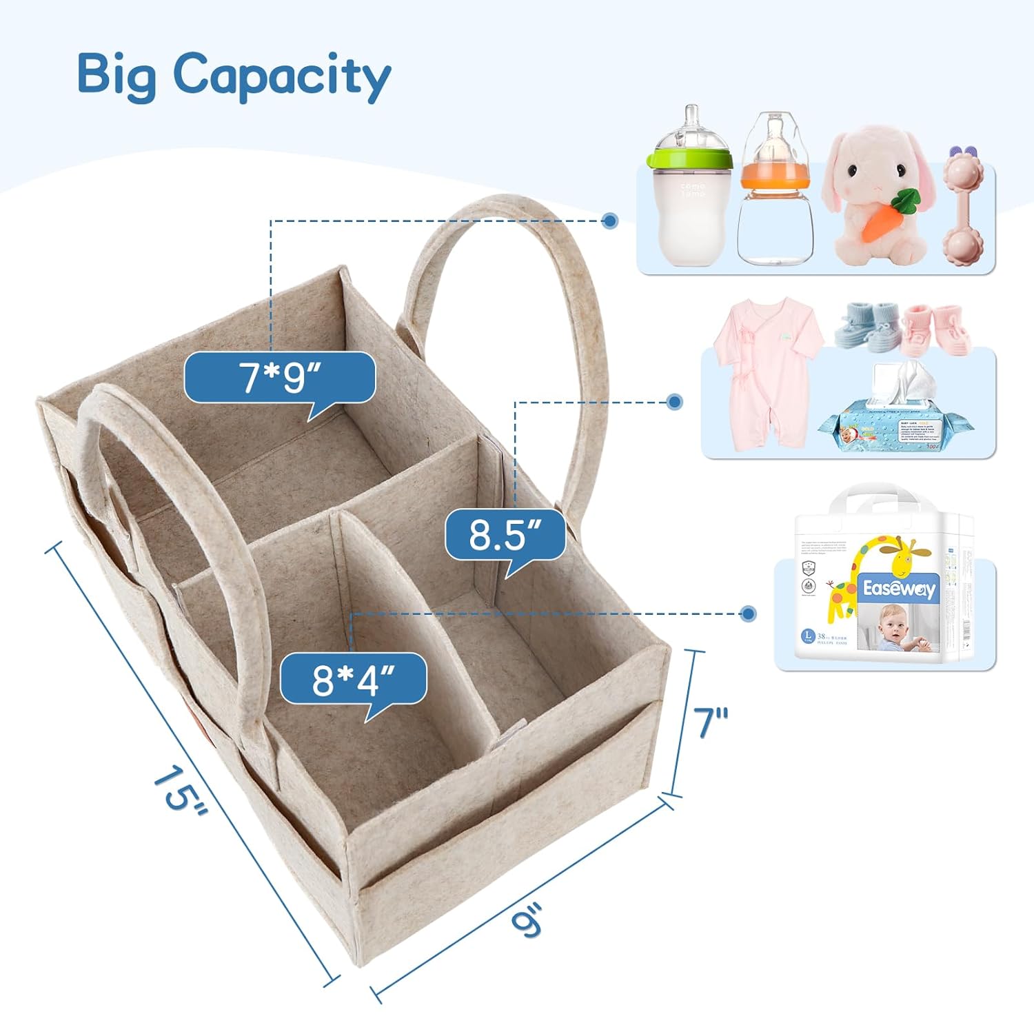 SKIN FRIENDLY AND PREMIUM QUALITY- The diaper caddy is made with high quality and soft felt material, which comes from nature, so it’s perfectly eco-friendly and safe for babies