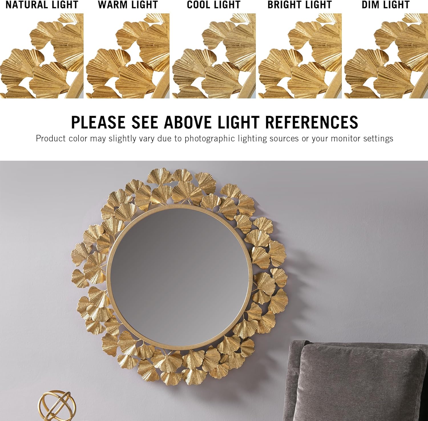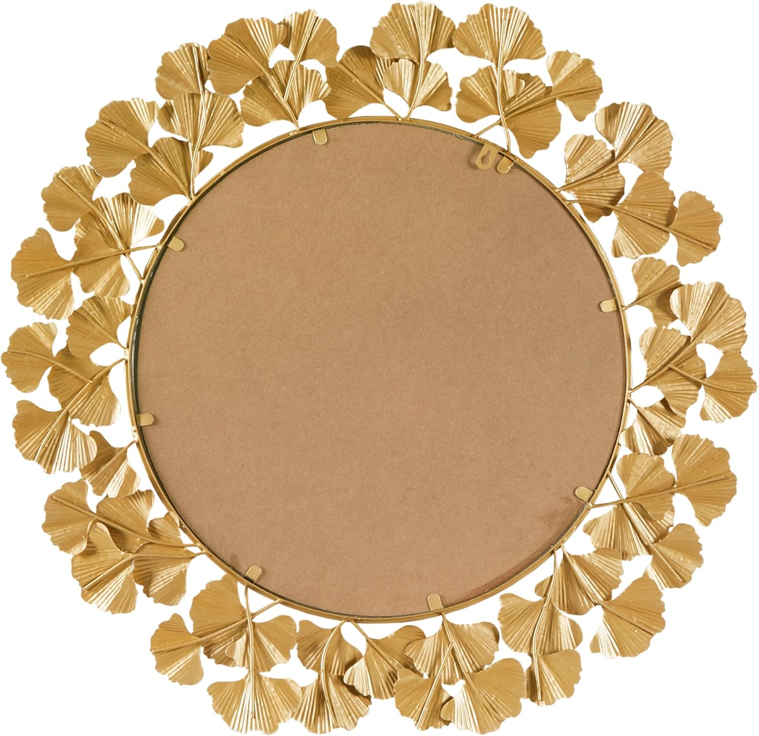 Martha Stewart Wall Décor Large Gingko Leaf Round Wall Mirror for Living Room, Iron Metal Plate Frame Antique Finish, Ready to Hang Bedroom Decoration, Eden, 30.5″, Gold