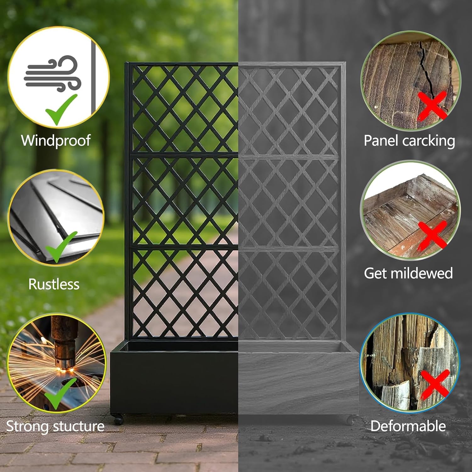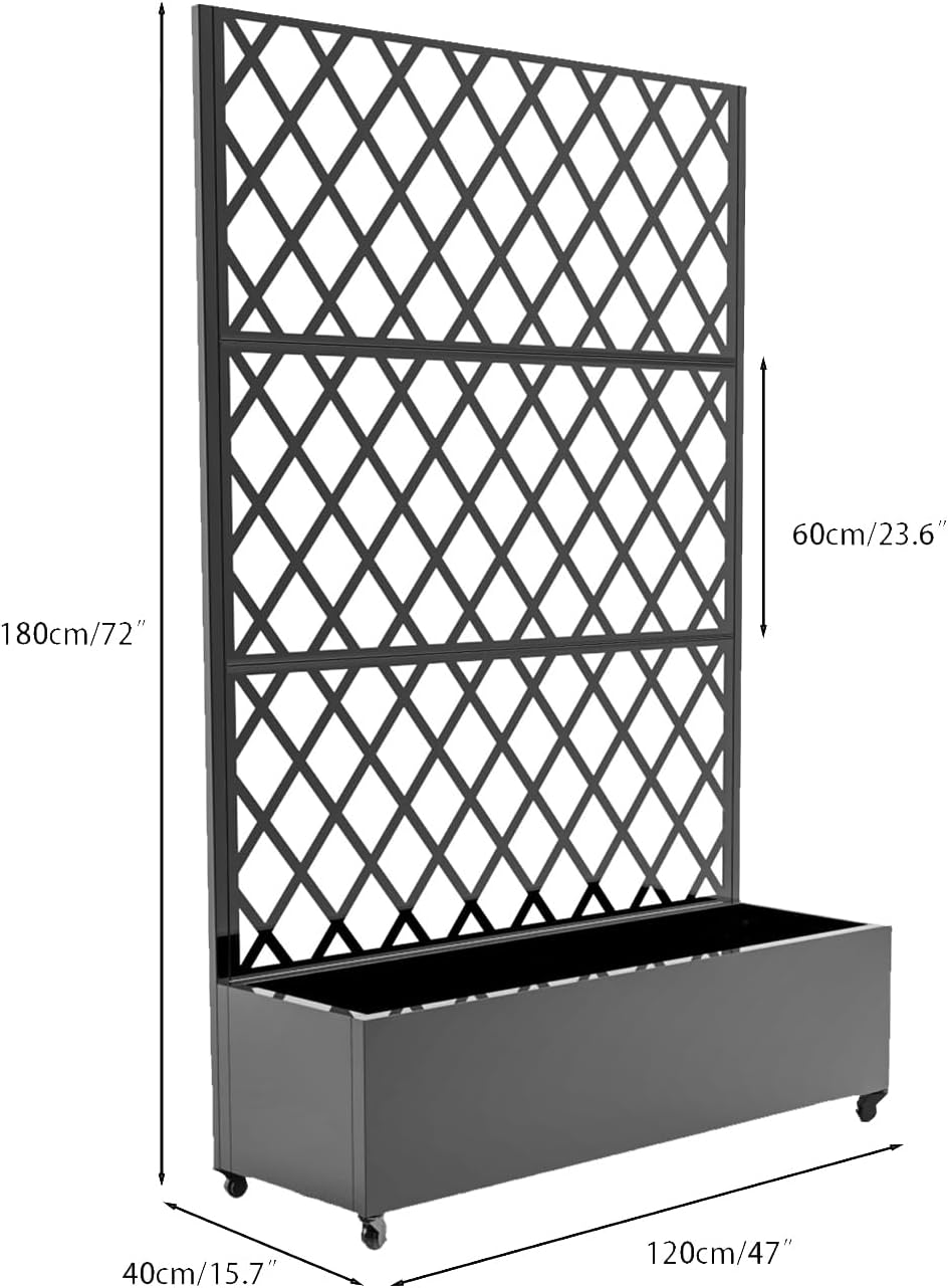 Integrated Diamond Trellis Design: The built-in diamond-shaped trellis provides support for vines and climbing plants. Attach hanging baskets, lights, or decorative items to complement your garden’s visual appeal.