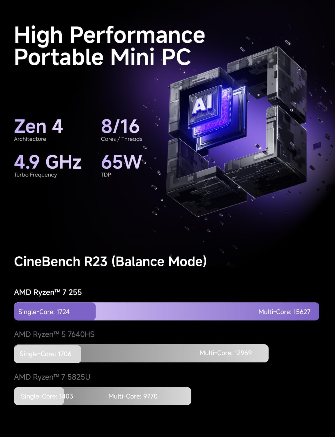 【High Performance Processor】The X1-255 Slim Mini PC feature with AMD Ryzen 7 255 (8C/16T) processor. The faster performance can handle productivity tasks smoothly. It widely used for image editing, browsing, light games,watching movies, daily life, programming etc.