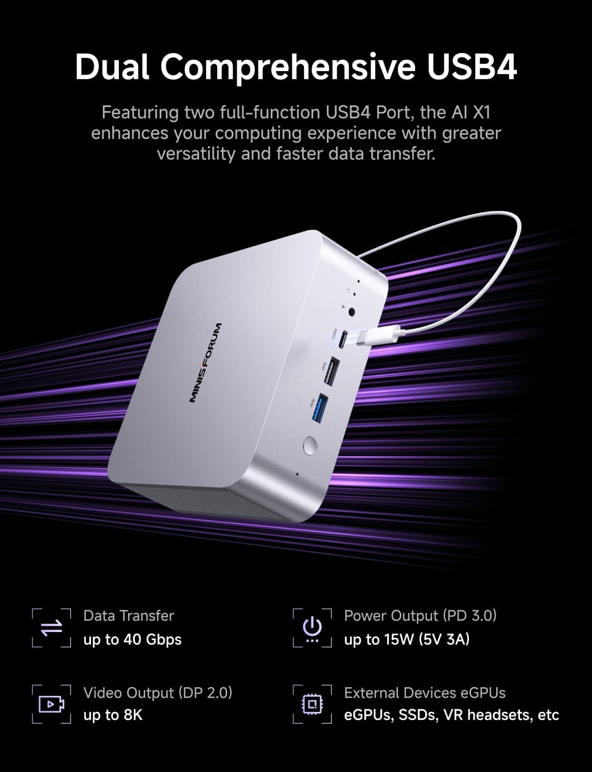 【Four Video Outputs】 This X1 Computer is Equipped with 1x HDMI, 1x DP and 2x USB4 Outputs, you can connect 4 displays at the same time. Increase work efficiency by expanding multiple workspaces.