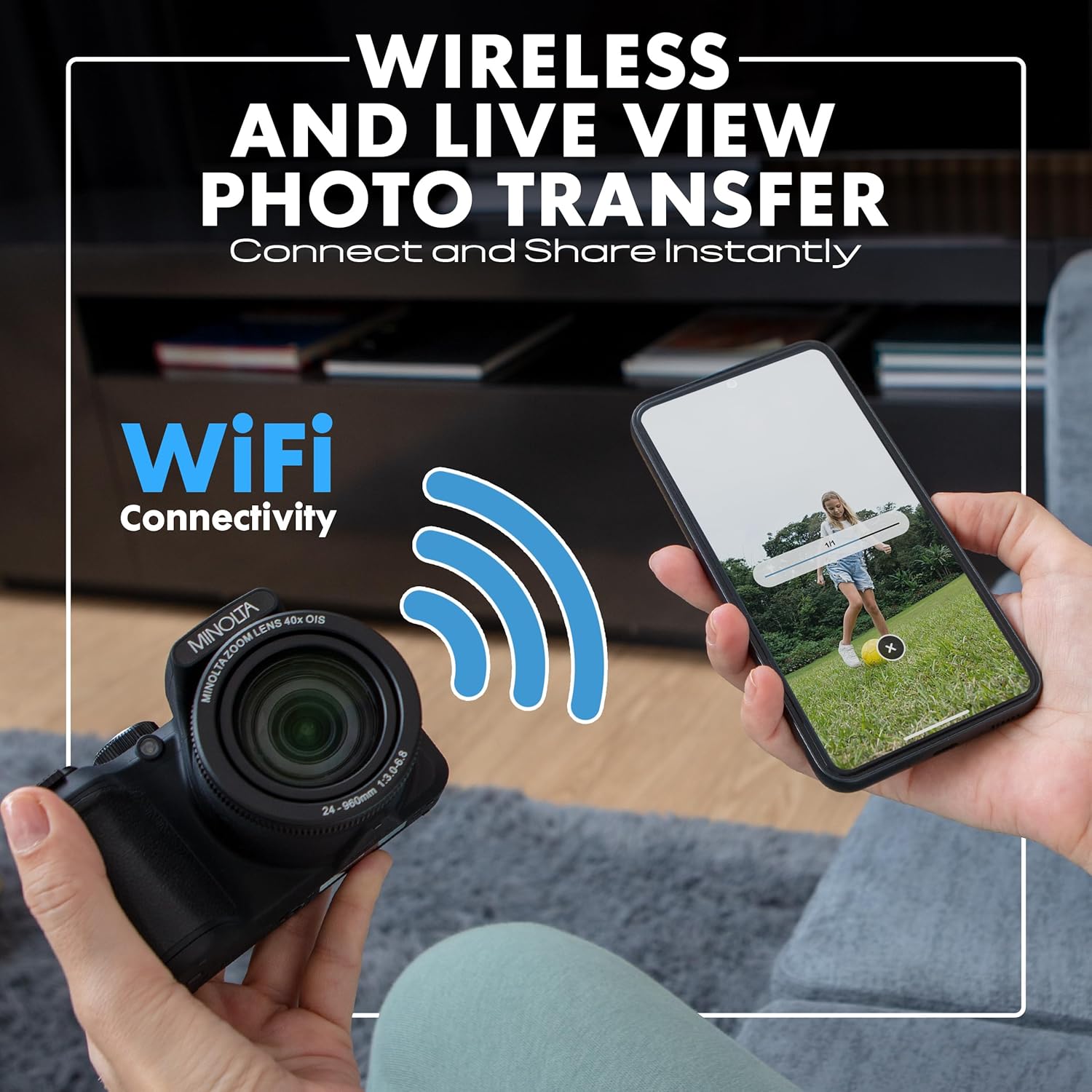 WIFI SHARING WITH SMART APP SUPPORT: Connect to your smartphone or tablet via built-in WiFi and transfer photos or videos instantly. Use the app for remote control shooting, perfect for group shots and on-the-go content creation.
