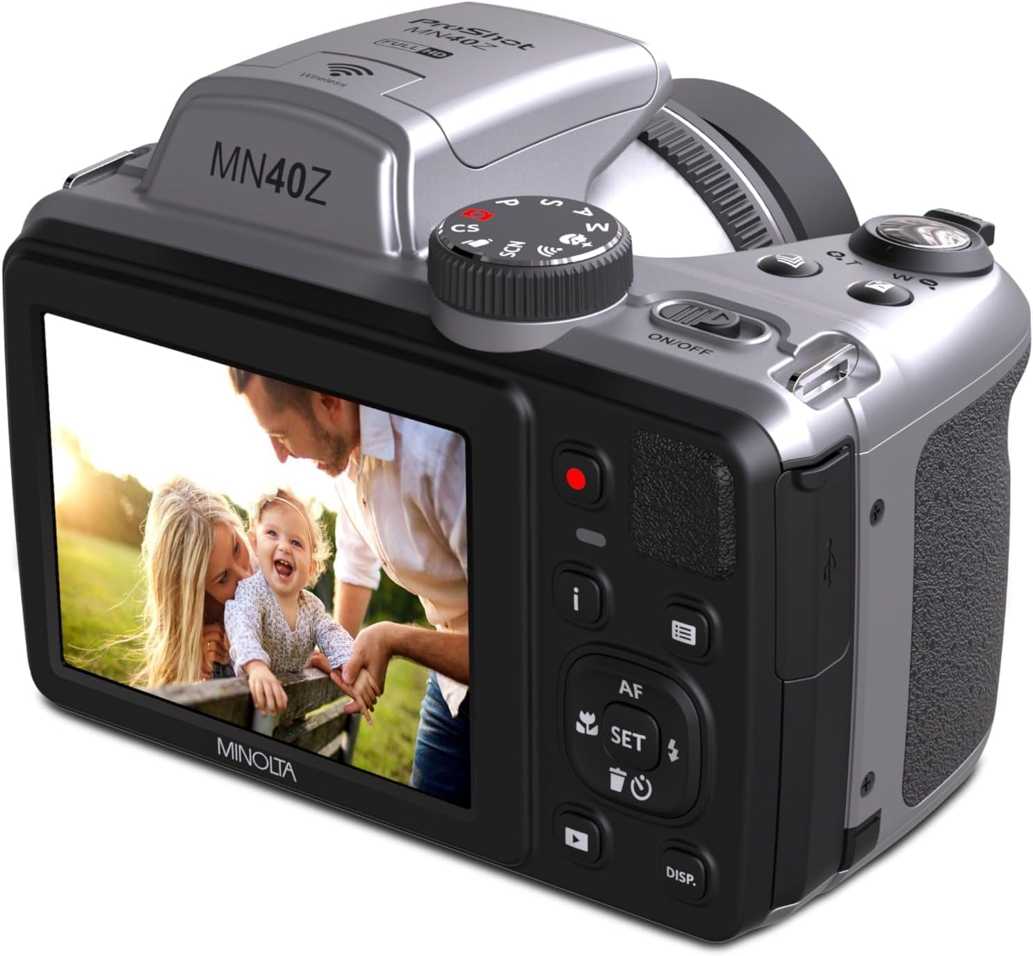 Minolta MN40Z 20MP Digital Camera – 40x Optical Zoom, 1080p FHD Video, 3.0″ LCD, Wi-Fi, Face/Smile/Blink Detection – Silver