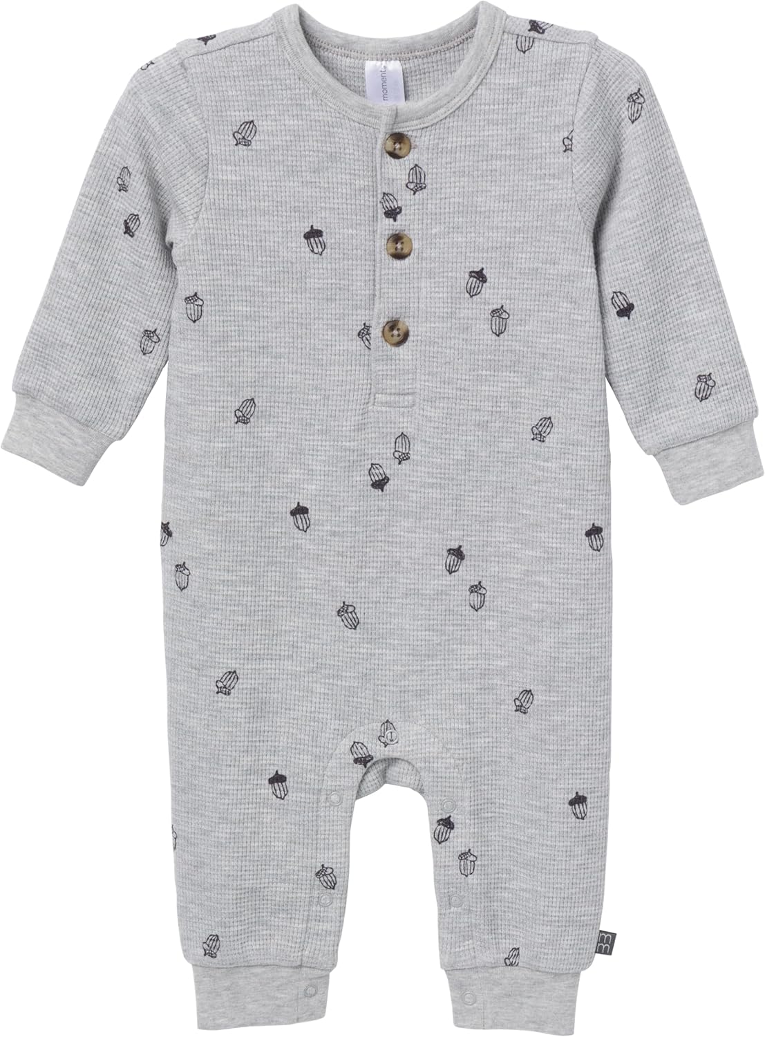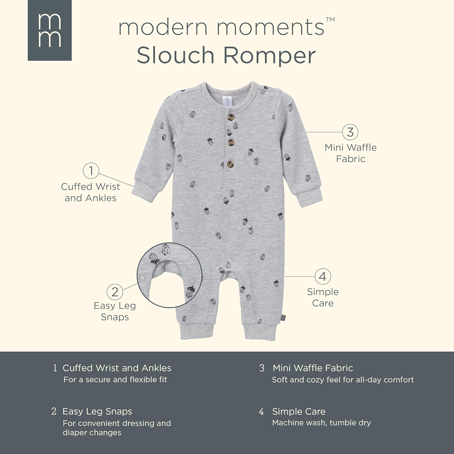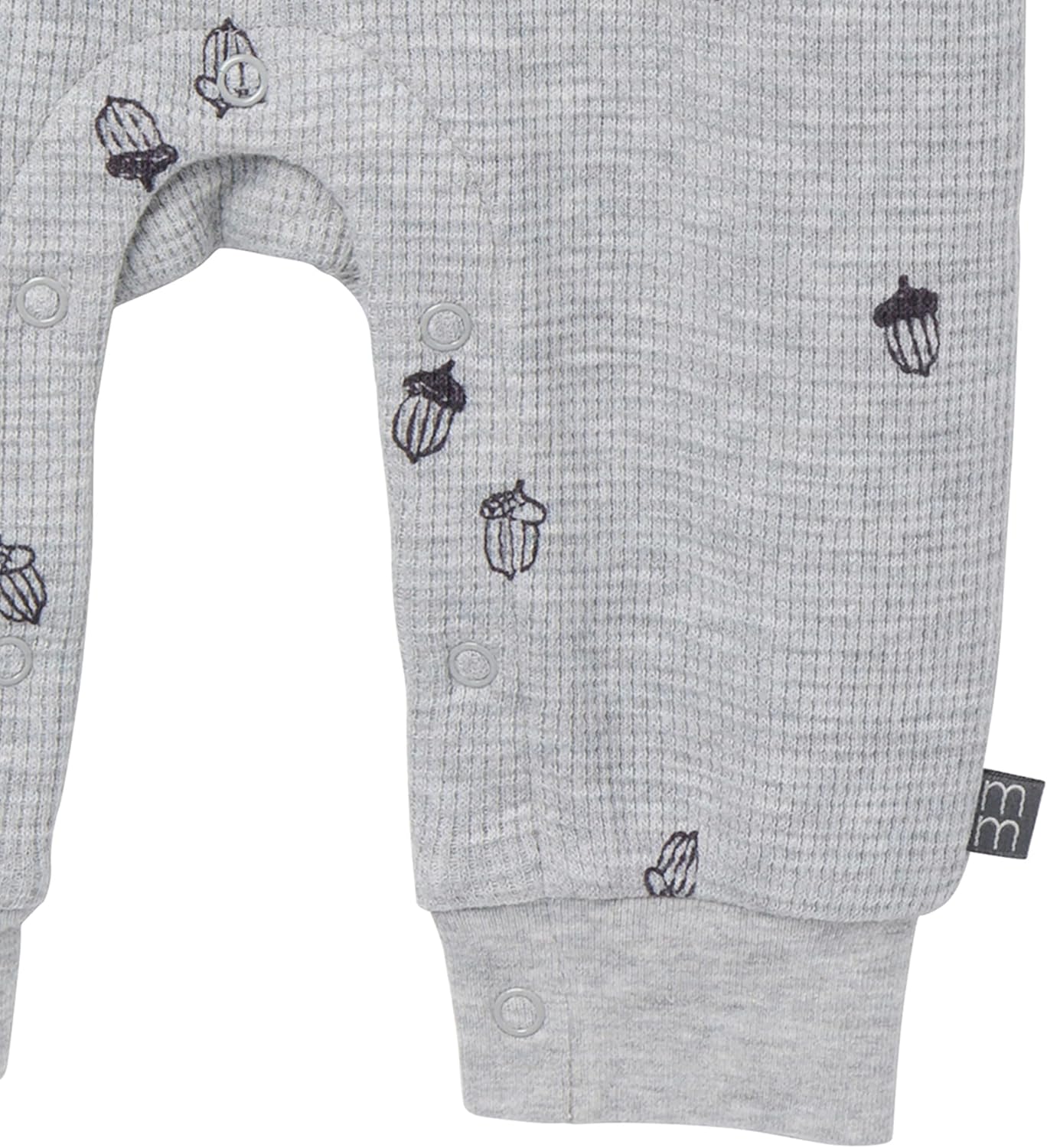 Made from warm and cozy mini waffle knit fabric, our baby or toddler romper is designed with both comfort and style in mind. Simple snaps make dressing and diaper changes easy, while the rounded, ribbed neckline provides extra comfort. To ensure a flexible fit for your active little one, stretchy ribbing at the ankles and wrists moves with them while at play. Finished with faux horn buttons for a touch of elegance, this romper is perfect for keeping your little one snug and fashionable all day long.