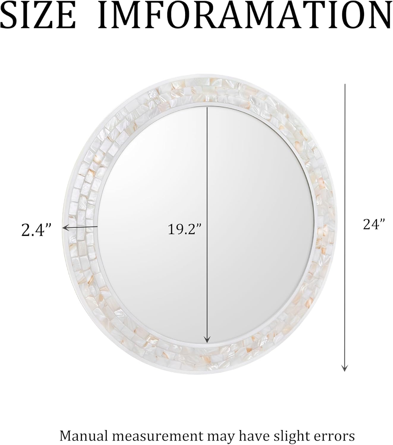 Excellent Quality: This round wall mirror features sophisticated artistry and consummate craftsmanship. The mosaic patterns covering the piece are created from natural mother of pearl inlays cut and inlaid by hands,the back is fixed with high density board and 8 metal buckles, the whole back is flat and stable, and fully protects the mirror, not easy to damage.