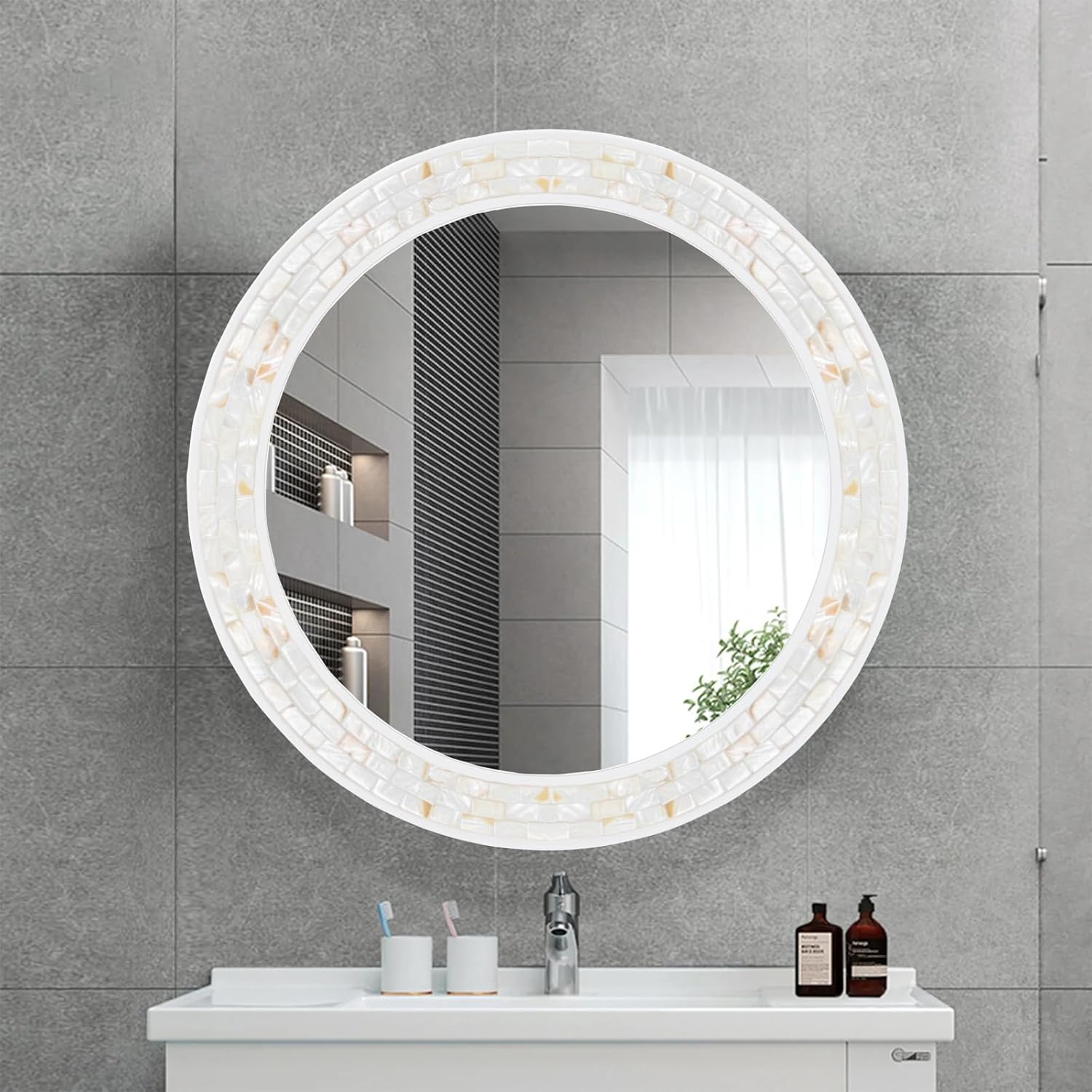 Classic Mosaic Design: Use the mother of pearl to decorative the frame, without the heavy feeling of tiles, the mirror is more lightweight and safer to hang on the wall. Elegant mosaic style make the mirror becomes a artwork placed in the bathroom, highlighting the interior decoration.