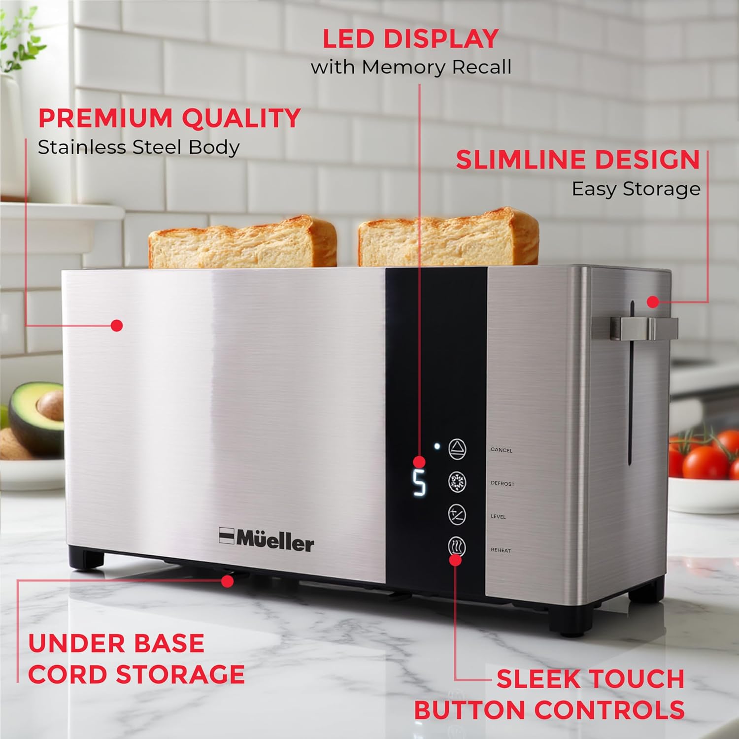 Multifunctional Toaster – Kickstart your mornings with fresh toast or perfectly warmed bagels with the Mueller UltraCrisp 2 Slice Toaster. Features Cancel, Defrost, and Reheat functions, self-centering slot guides, and intelligent heating technology to deliver even toasting every time!