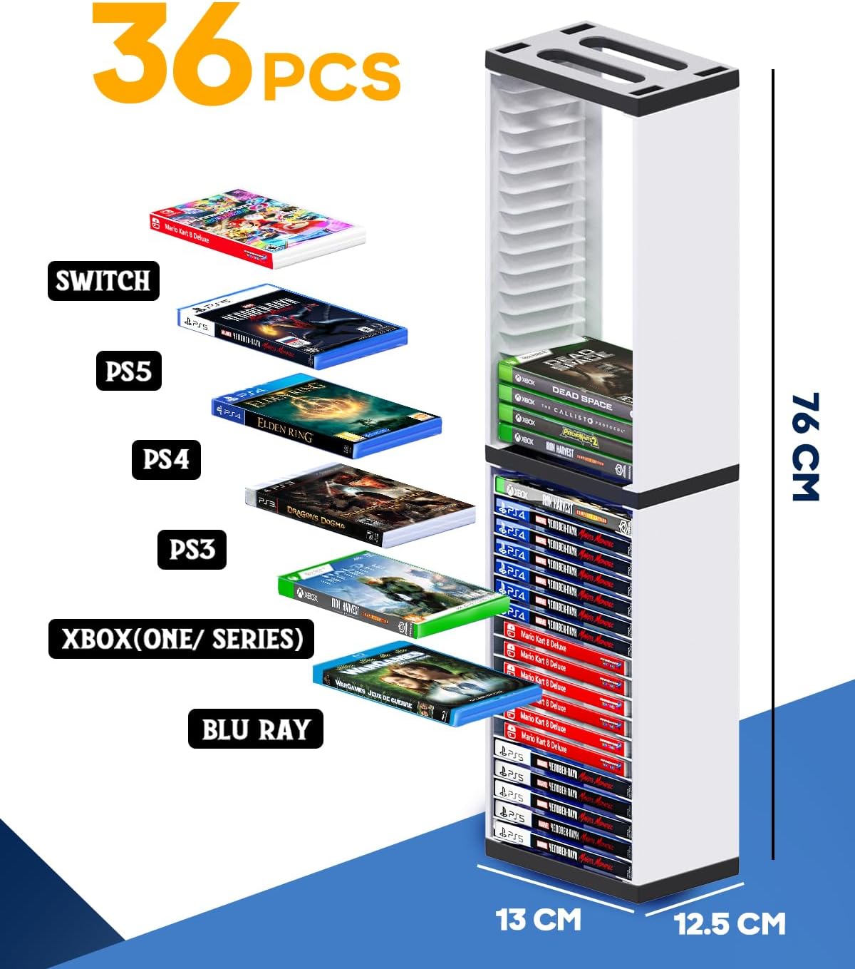 Made of ABS material, hard, stable and very durable, non-slip pad design on the bottom means you don’t need to worry of the disks falling off anymore and this stand can hold up to 36 game card boxes