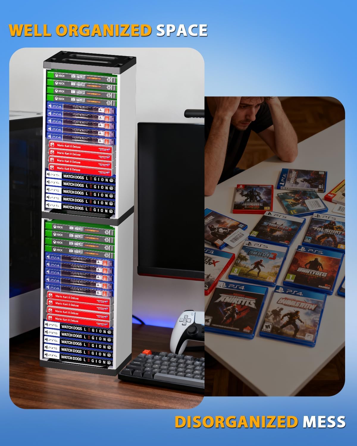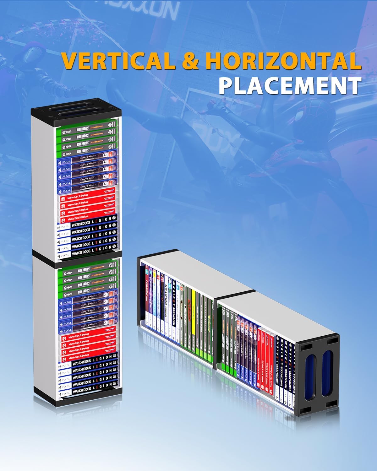 Keeps your games neatly arranged and easy to find. No more searching through piles of game discs. Plus, it can also be placed horizontally for additional display options