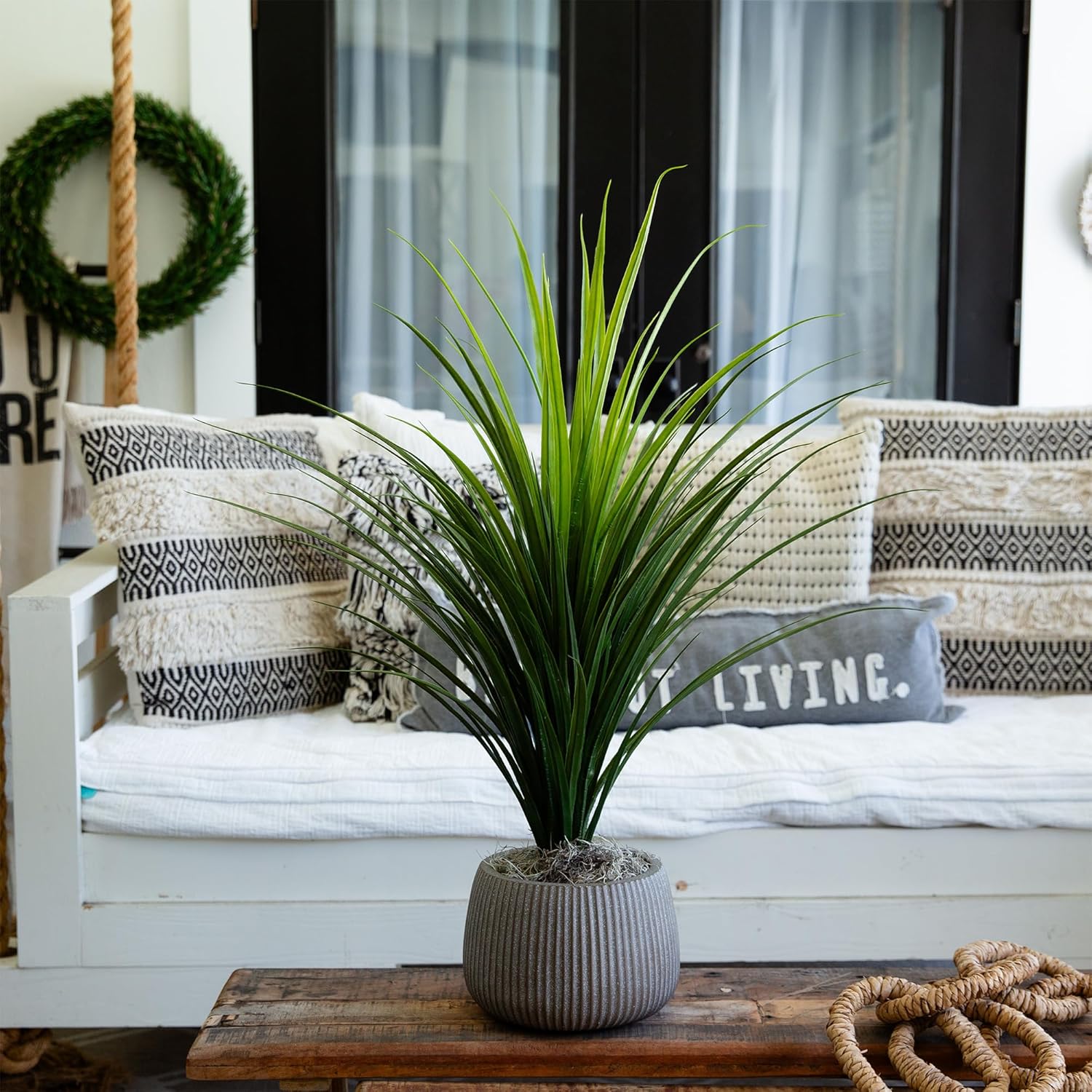 DURABILITY AND MAINTENANCE-FREE: Enjoy the long-lasting beauty of this artificial grass plant with wear-resistant foliage that stands up to the elements; perfect for high-traffic areas and requires no watering or pruning, making it an effortless addition to your decor.