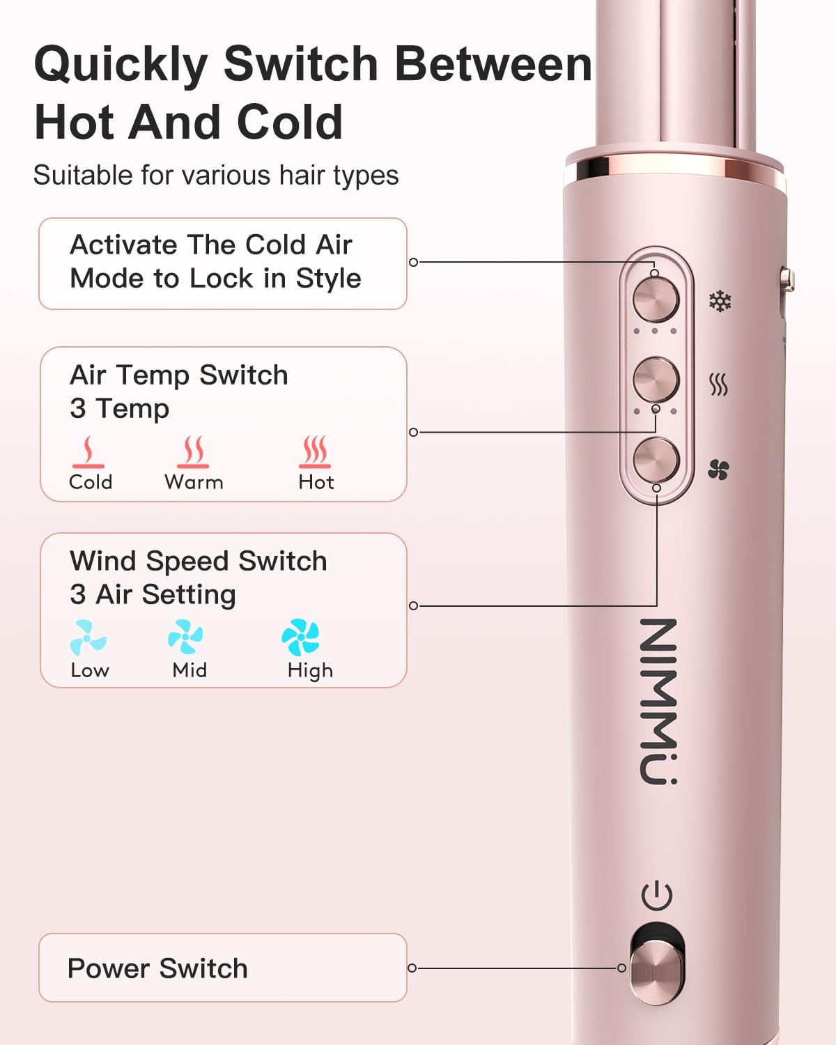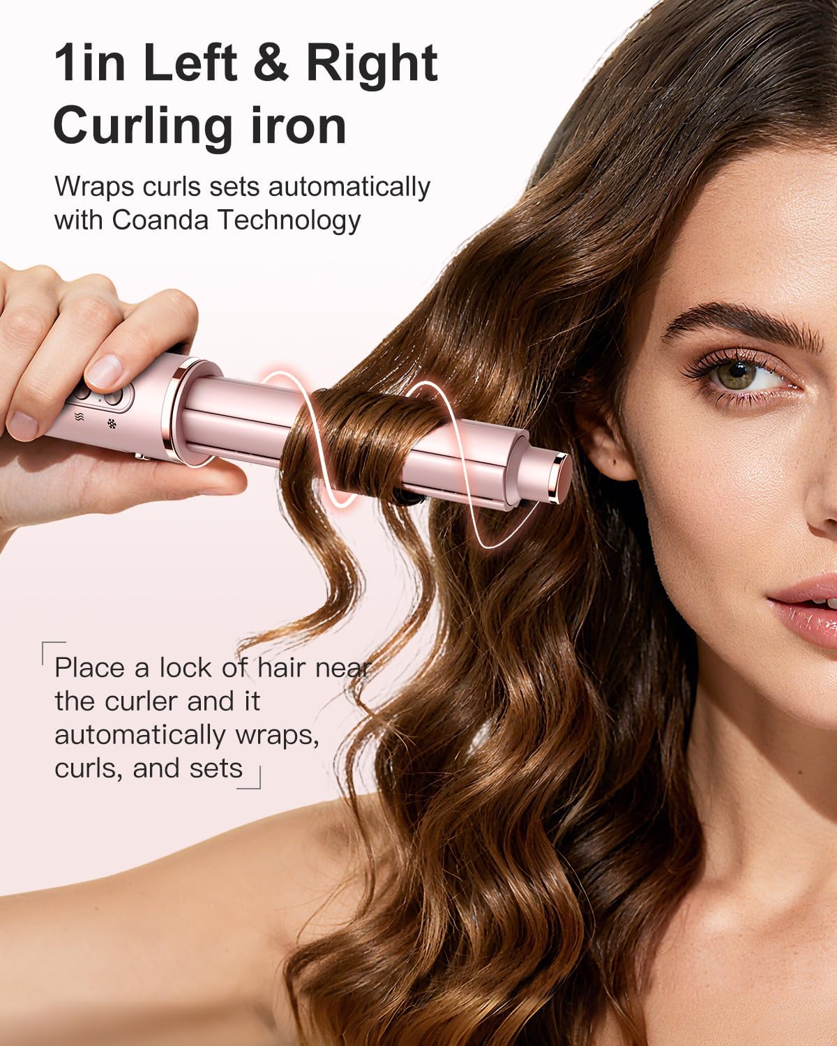 Auto Wrap Curlers: The air curling iron features a High-Speed Brushless Motor and innovative air duct design, it generates powerful airflow and pressure from the air curler, harnesses the Coanda effect to create an air swirl around the curler, automatically adsorb, wraps, and curls hairs for voluminous, smooth, natural hairstyle. 2 auto-wrap hair curlers to curl in different directions.