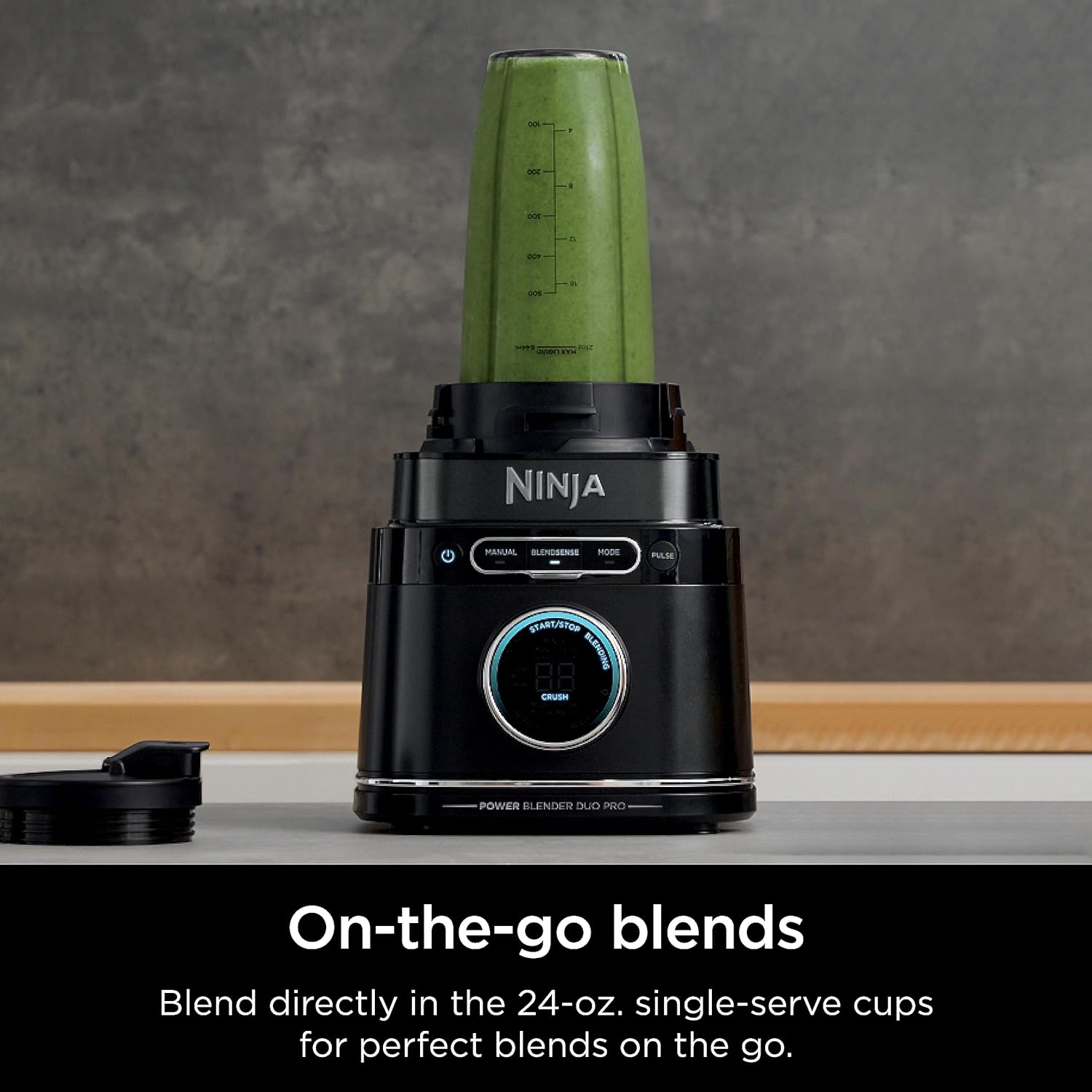 The Ninja Detect Duo Power Blender Pro with BlendSense Technology allows you to add ingredients, press the dial, and watch them blend into a perfectly smooth output. This blender adjusts the power, speed, and time needed to make perfect smoothies, shakes, frozen drinks, and more in the full-size pitcher or 24-oz. to-go cups. Includes food processing modes to mince and chop veggies and salsas.