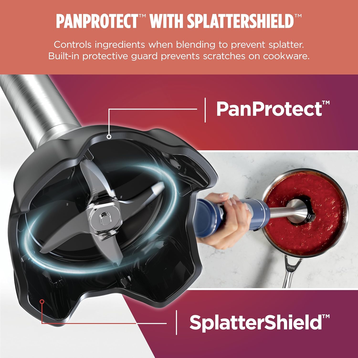 Unlock powerful immersion blending and high-speed whisking, all in one multi-use device. The compact, 4-speed, 750-peak-watt PowerBase™ transforms from a hand blender to a rapid whisk so you can easily create sauces, soups, smoothies, meringues, whipped cream, batter, and more. Including PanProtect™ with SplatterShield™, this immersion blender is designed for scratch-free blending* and to prevent splatters, keeping ingredients in your pot and off your countertop. (*When used as directed.)