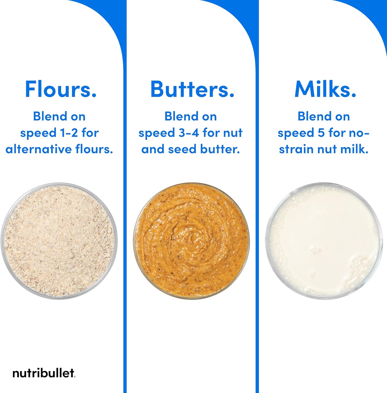 Precision speeds. A dynamic speed range of 1-5 offers the precision to blend everything from delicate nut flours to fully-emulsified nut milk – no straining required.