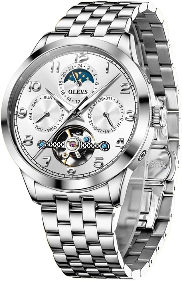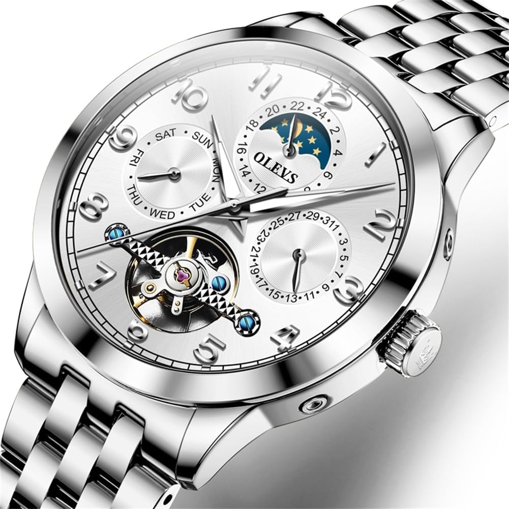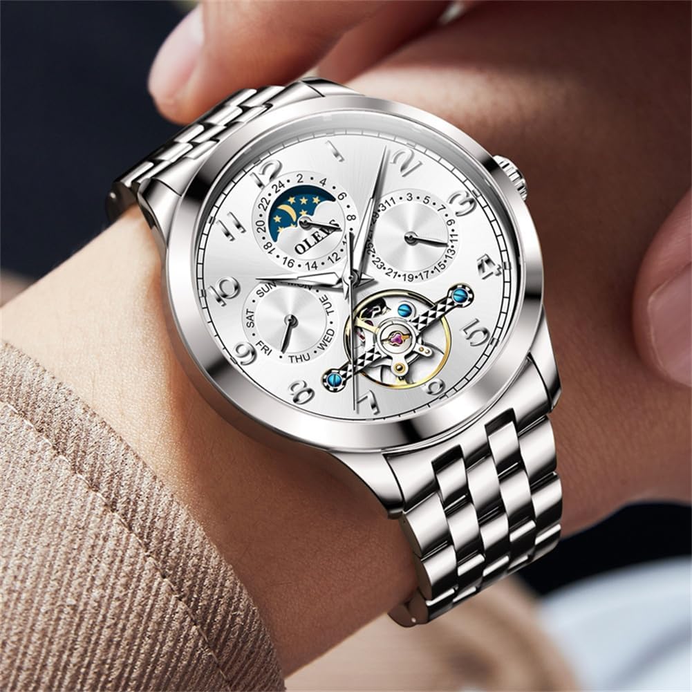 OLEVS Automatic Watch for Men Self Winding Mechanical Luxury Business Stainless Steel Multi Calendar Waterproof Luminous Wrist Watches