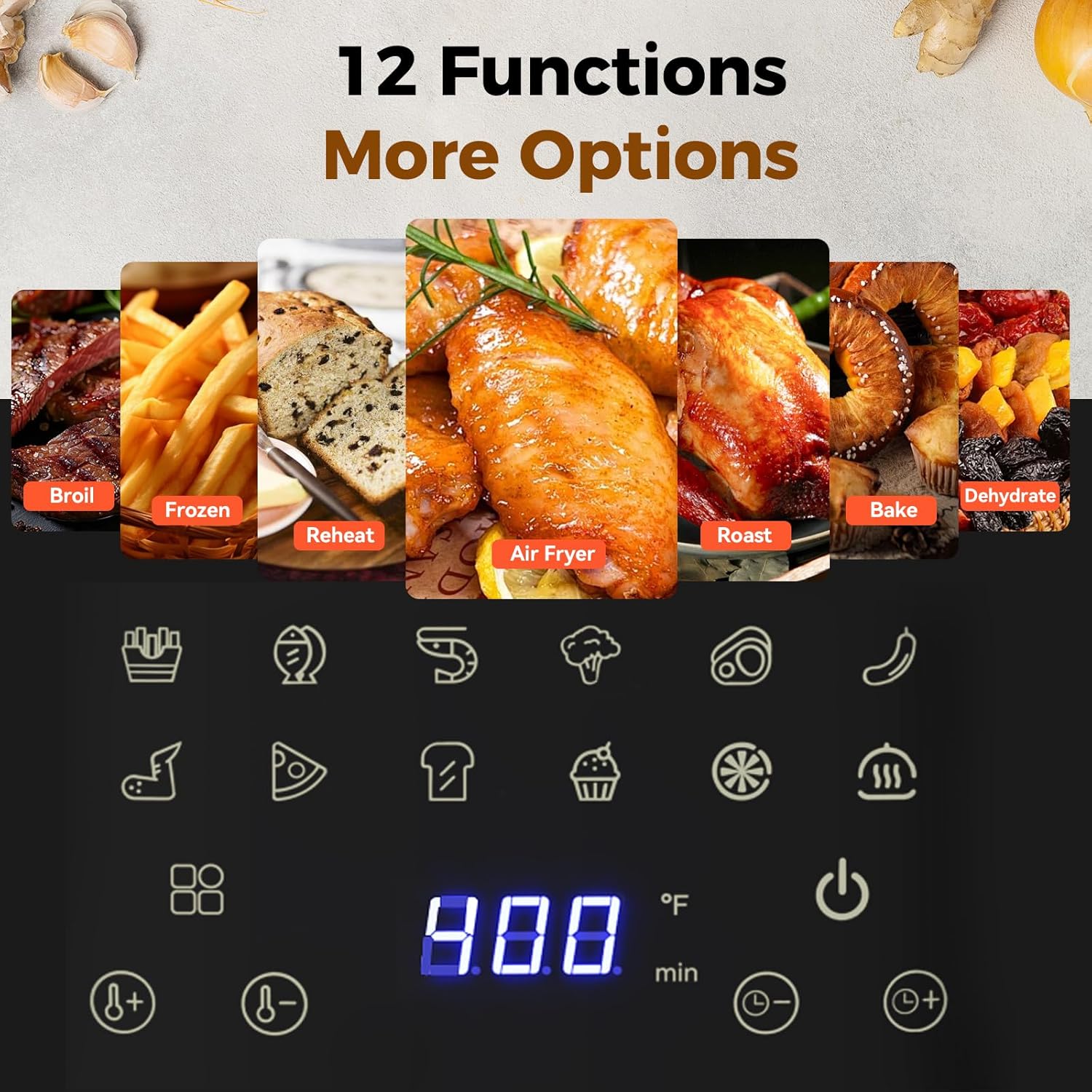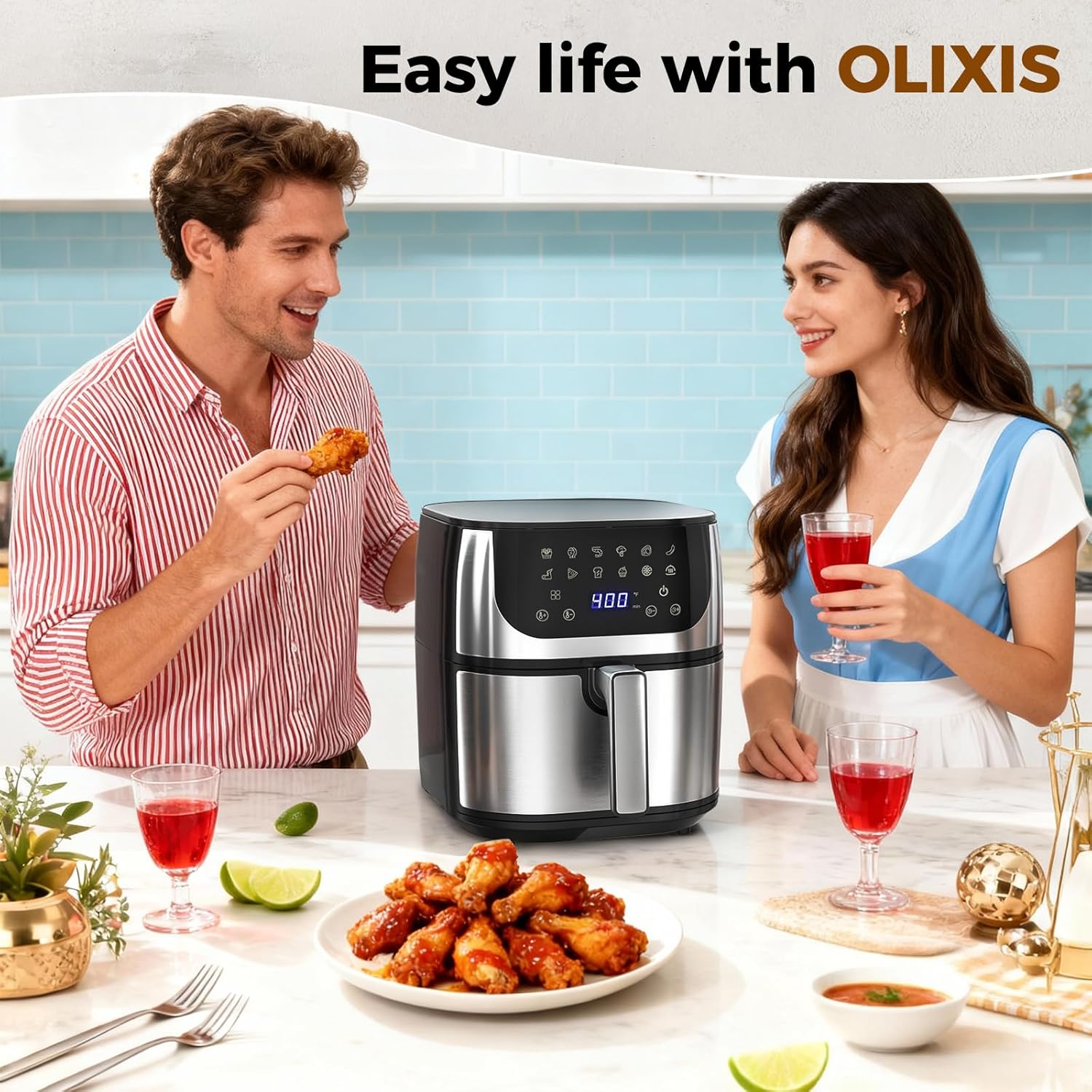 Functional Air Fryer: OLIXIS 7.9 QT air fryer delivers 1800W of power with 12-in-1 functionality, letting you fry, bake, roast, and more. Achieve golden, crispy results without excessive oil, making every meal healthier and tastier