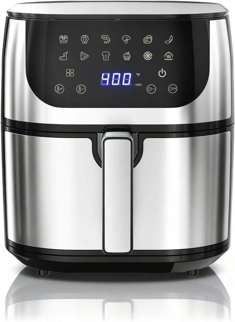 Large Capacity: Cook large meals with ease using the 7.9 QT air fryer. Perfect for family-sized portions or entertaining guests, its generous capacity ensures you can prepare multiple servings without having to cook in batches