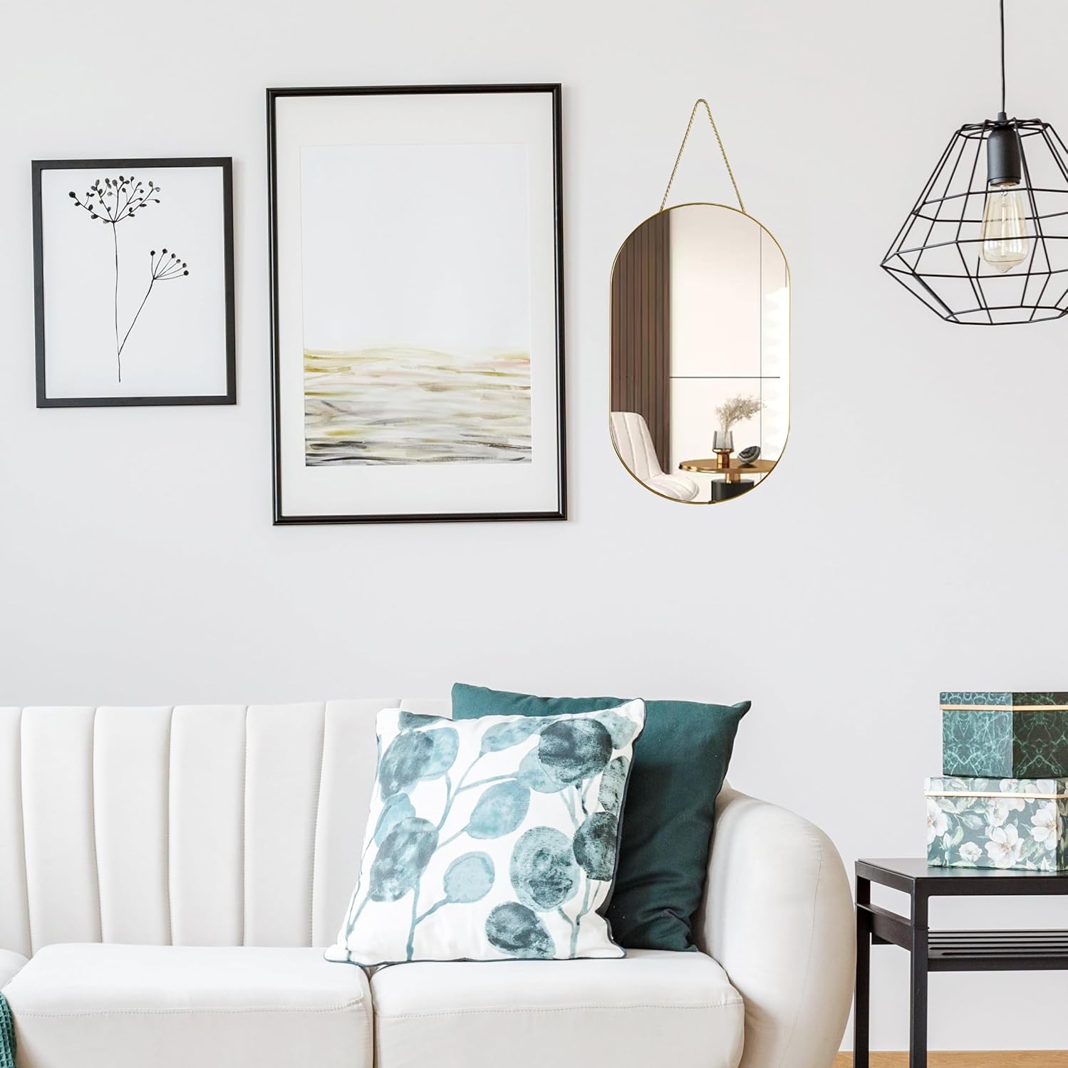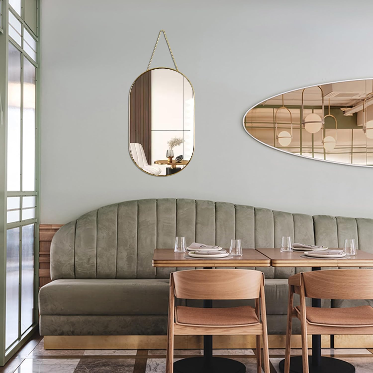 Gold 16×9.2 inch Oval Mirror: Gold PVC Plastic frame of wall mirror, simple and modern design, high-definition imaging without distortion, suitable for any room, bathroom, bedroom, living room, hallway, entrance, etc.