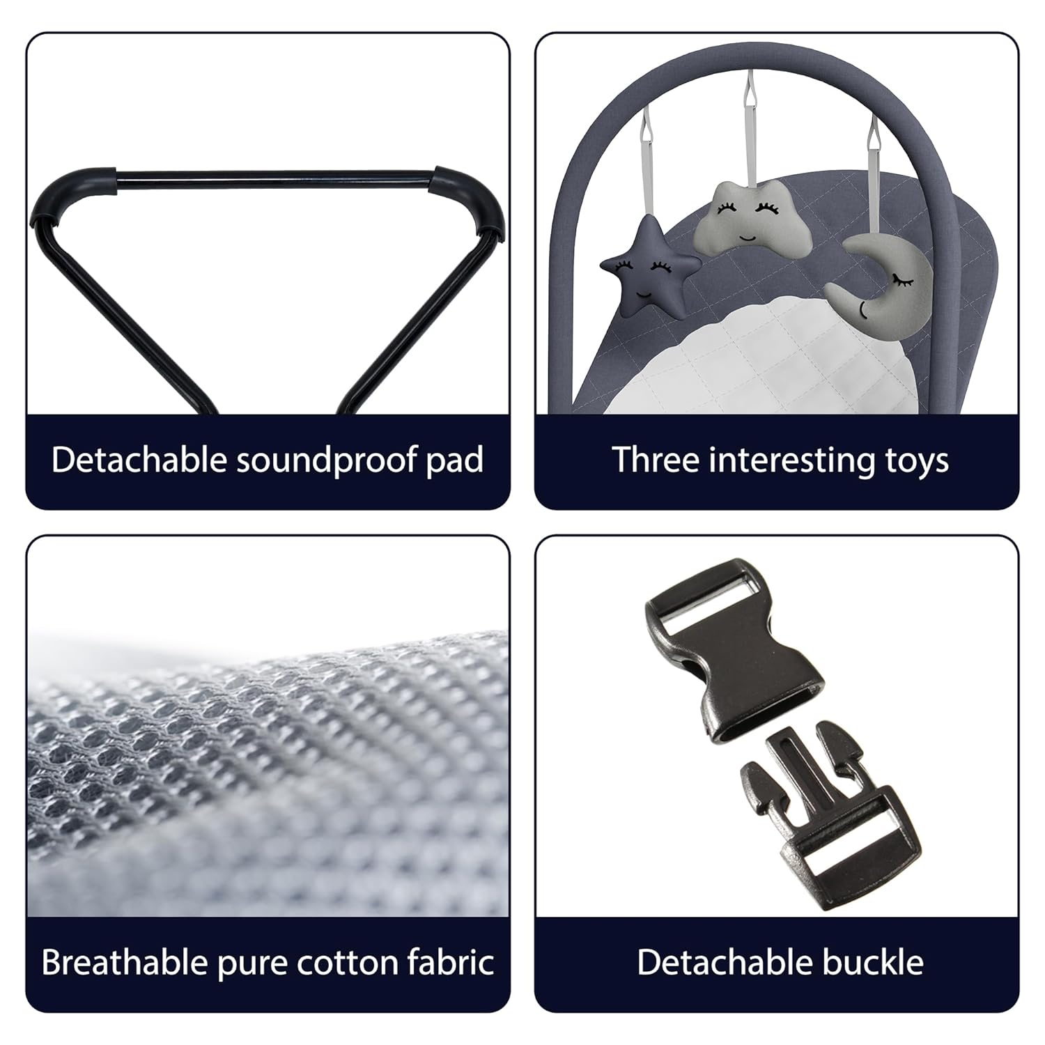 【Two Modes of Comfort】Choose between swing mode for a soothing back-and-forth motion that helps calm your little one, or bounce mode, where the chair responds to your baby’s own movements. This feature helps develop balance and motor skills while providing hours of gentle movement