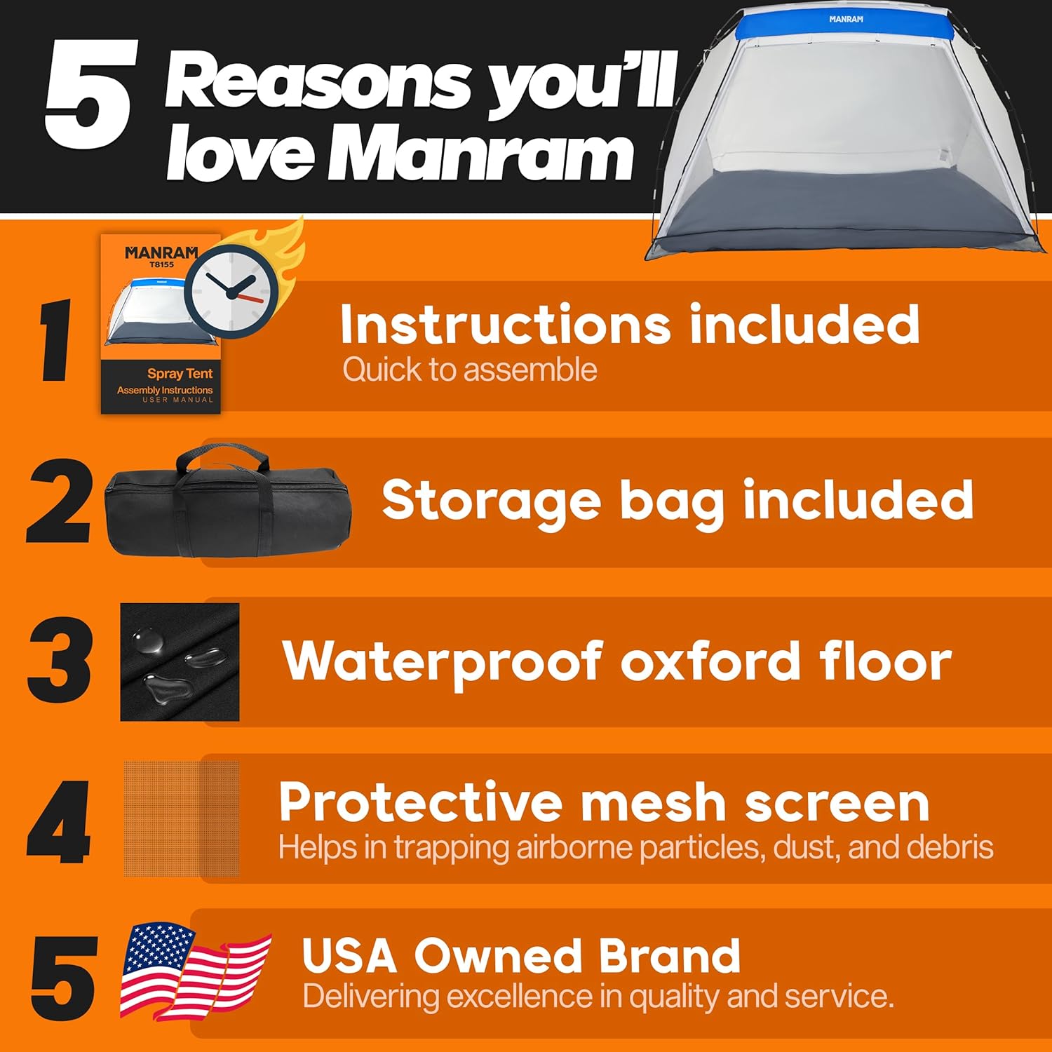 𝐒𝐢𝐳𝐞- The spray booth tent measures 9x6x5.5 ft. and includes a drop-down mesh screen door and a floor made of durable Oxford material.