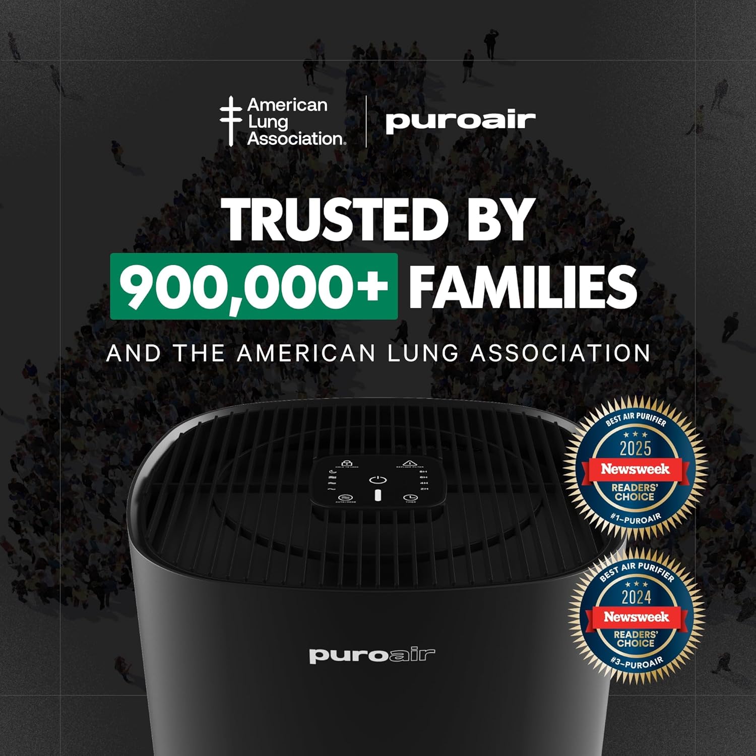 Cleaner Air in Minutes: PuroAir is proven to filter the pollutants lurking in your home’s air. This large room air purifier cleans rooms up to 1,000 sq ft in one hour.* Breathe clean, crisp air and kiss your allergies goodbye! (Based on independent testing in an ISO 17025 certified lab and typical residential room’s ventilation rates, 2025.)
