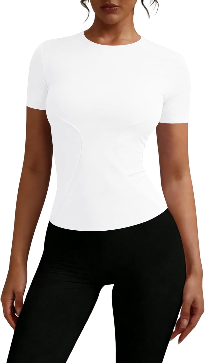 Rapbin Workout Tops for Women 1/2 Pack Fitted Short Sleeve Gym Yoga Athletic Shirts 2026 Quick Dry Crewneck Tees