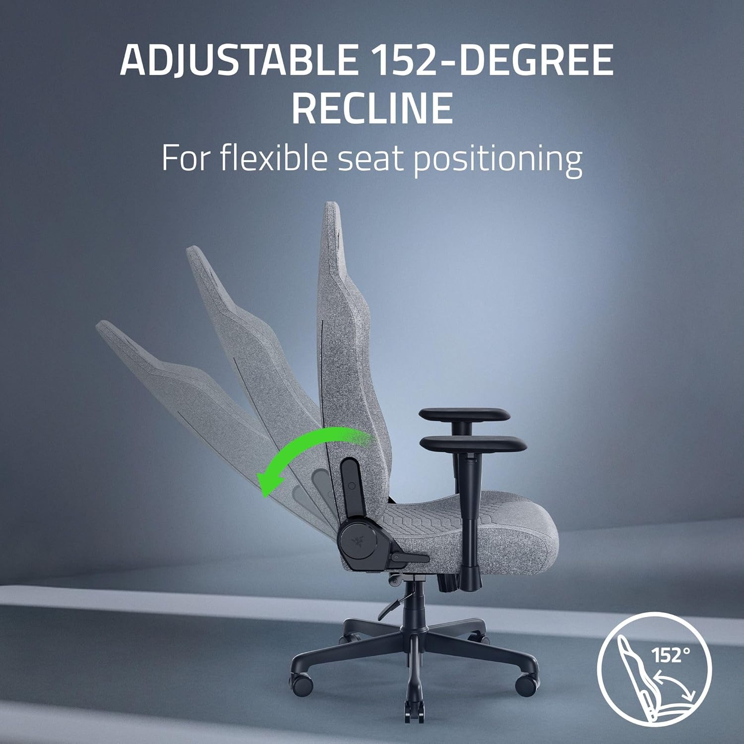 ADJUSTABLE 152-DEGREE RECLINE — Lean back and set the ideal angle with a backrest that has an adjustable recline of up to 152 degrees