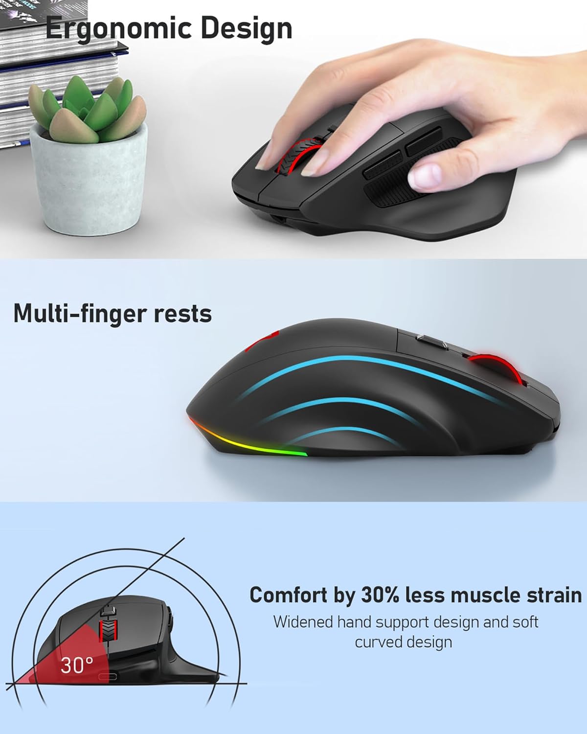 【Stronger Compatibility & 1 Year After Sales Service】This gaming mouse wireless is compatible with Windows, Mac OS, iOS, Android, Linux, and Chrome OS. Suitable for desktop, laptop, tablet, PC, PS4, PS5, XBOX, MacBook, and other devices. We promise that our product has a 1-year free after-sales service. Even after the Amazon return period, as long as you contact us, we will try our best to solve it for you.
