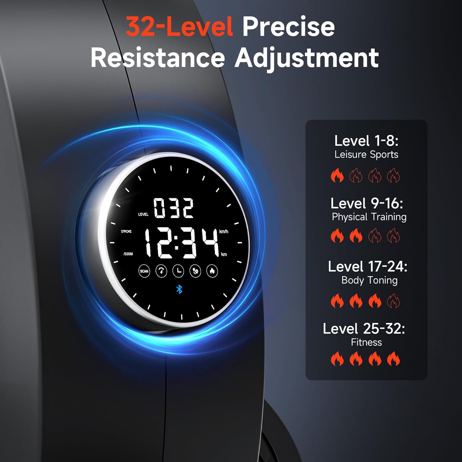 [Upgraded 32 levels strong magnetic resistance] The upgraded rowing Machines for home features an electromagnetic flywheel provides more stable and sufficient power than traditional magnetic resistance, ensuring a more efficient and smooth exercise experience. With 32 adjustable resistance levels, it suits both beginners and professionals for effective workouts.