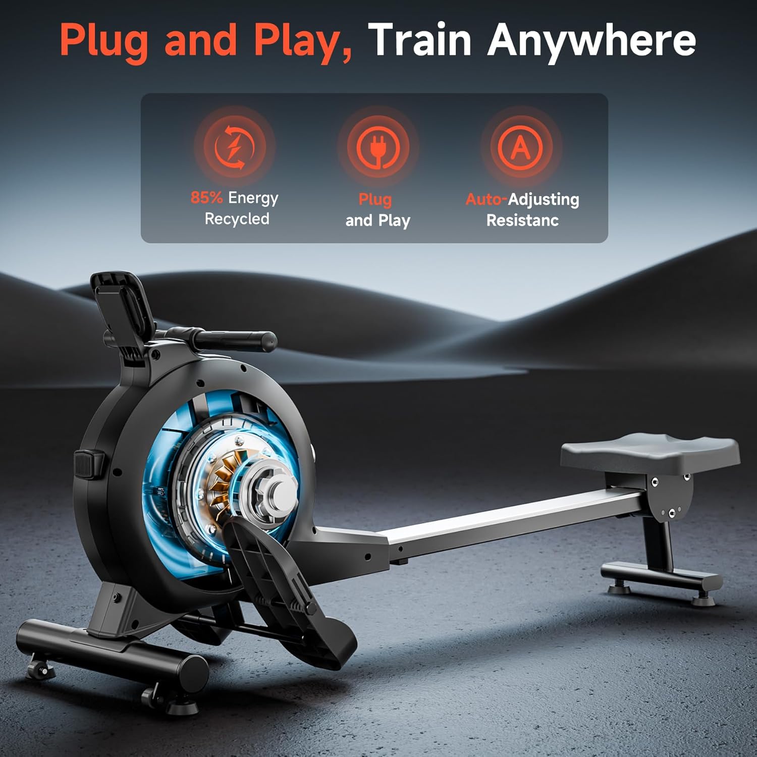 [Smart Electronic Control & Fitness Tracking] The rowing machine is equipped with an intelligent electronic resistance knob, allowing you to easily adjust the resistance level anytime. Track your exercise data in real time through the LCD resistance knob display, showing Time, SPM, Distance, Speed, Calories and Stroke Count. It lets you truly enjoy the sport and fully immerse yourself in the experience.