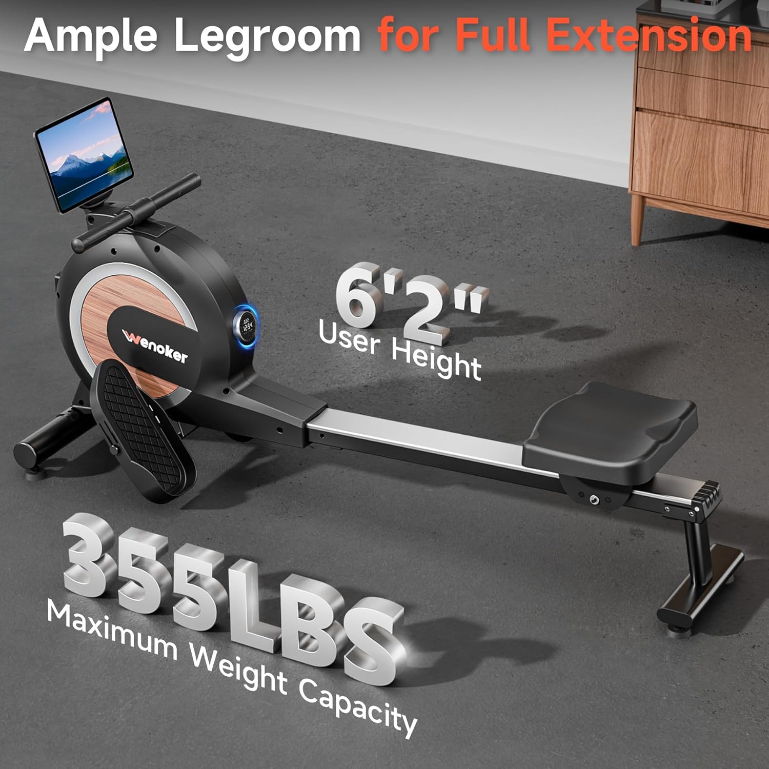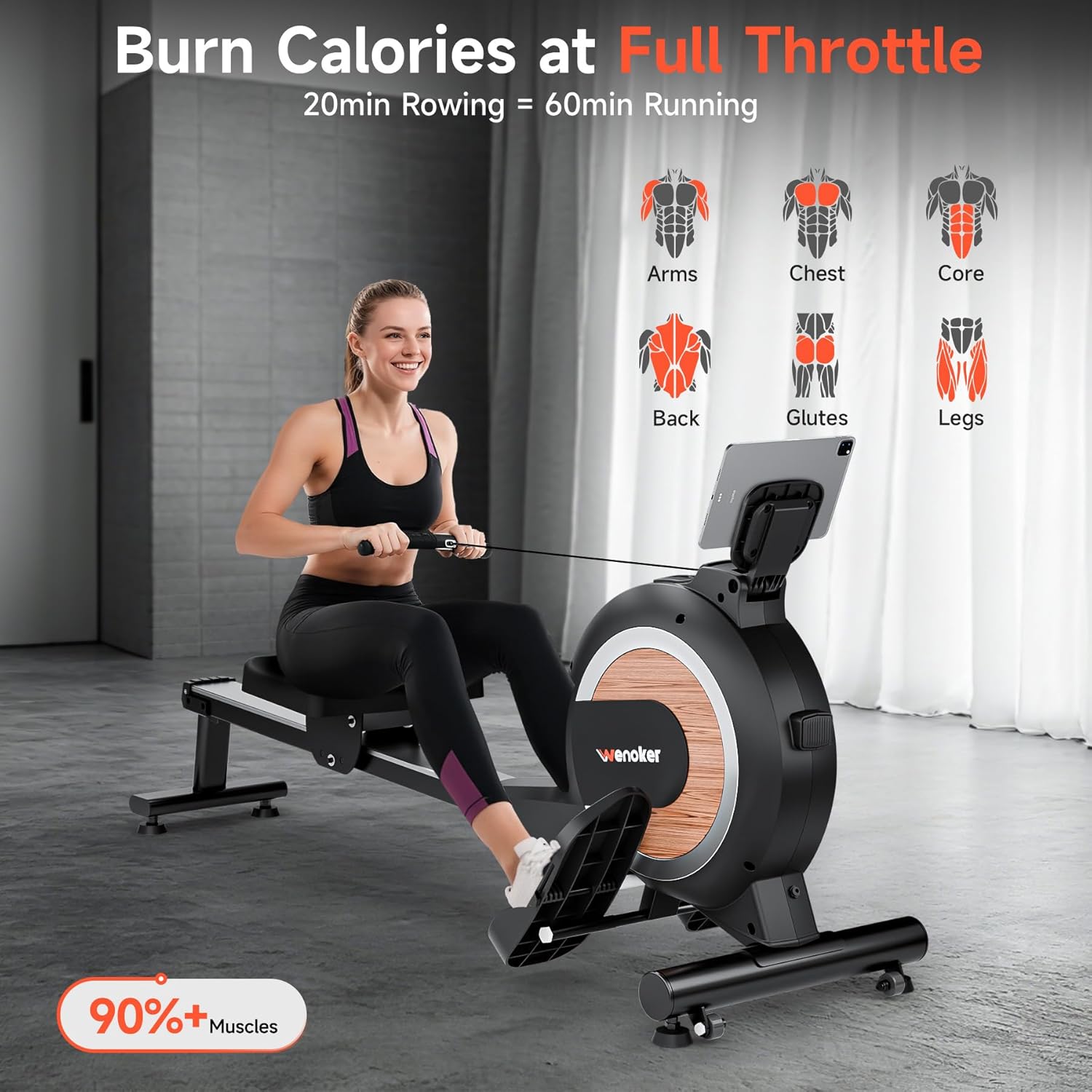 [Sturdy Construction & Easy Assemble] High durability aluminum alloy rower machine with thick rail for more safety and stable workouts. The maximum weight of 350 pounds allows more exerciser to achieve their fitness. Enjoy the achievement of easy assembly with our compact packaging. WENOKER rowing machine comes with a 1 year warranty and professional technicians from assembly to use, our team provides you with excellent after-sales customer support.